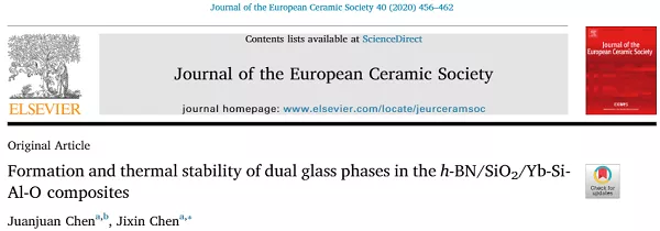 Formation and thermal stability of dual glass phases in the h-BN/SiO2/Yb-Si-Al-O composites, J. Eur. Ceram. Soc., 40, 456-462 (2020)。 https://doi.org/10.1016/j.jeurceramsoc.2019.10.028.