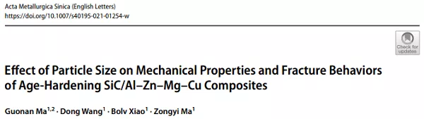 Effect of Particle Size on Mechanical Properties and Fracture Behaviors of Age-Hardening SiC/Al–Zn–Mg–Cu Composites, Acta Metall. Sin., (2021)。 https://doi.org/10.1007/s40195-021-01254-w.