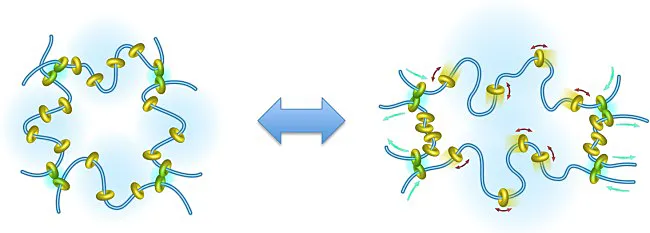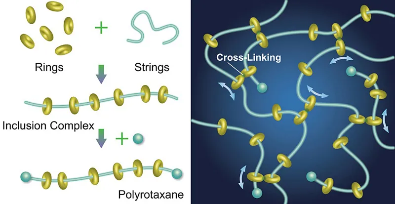 滑动环水凝胶示意图。图片来源:J. Appl. Polym. Sci. [4]