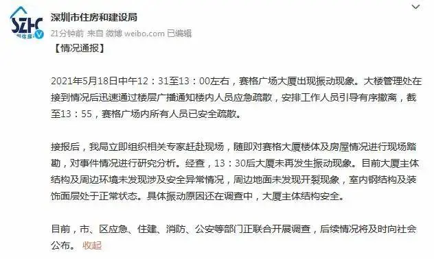 事件始于5月18日,赛格大厦发生晃动,人员紧急疏散,高层商户甚至从数十层跑步下楼。而5月19日和20日,部分商户反映大楼又出现了二次晃动。