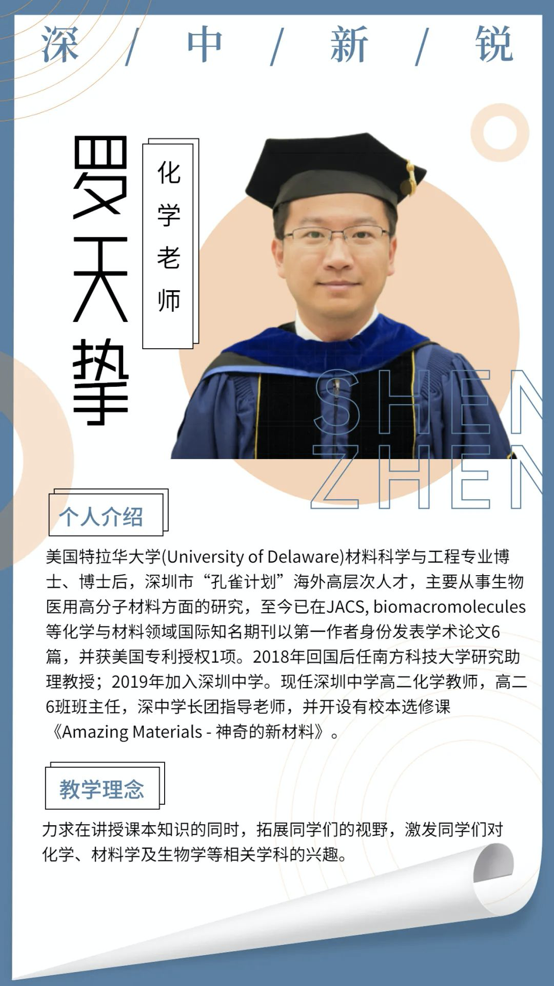 据深圳中学微信公号日前推送的一篇文章透露,罗天挚已于2019年放弃南科大工作,入职深圳中学。他目前担任深圳中学高二化学教师、高二6班班主任,并开设校本选修课《Amazing Materials-神奇的新材料》。