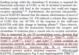 药物所论文第6页:配体RANTES的特定氨基酸Y3结合CCR5的第37位、第83位、第86位氨基酸)。