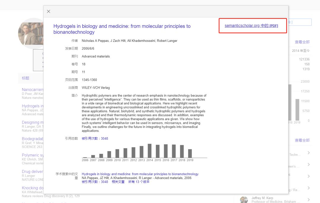 搜索 Robert Langer,我们可以直接打开上面那个带有羽毛的人名。