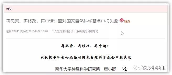 今天我们来看看:[南华大学唐小卿教授]再思索、再修改、再申请:面对国家自然科学基金申报失败。