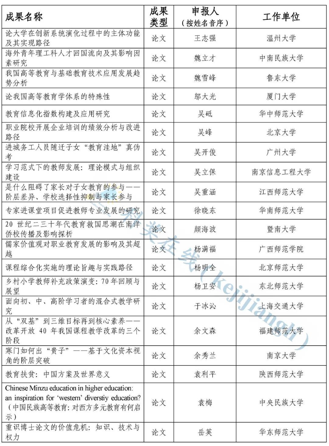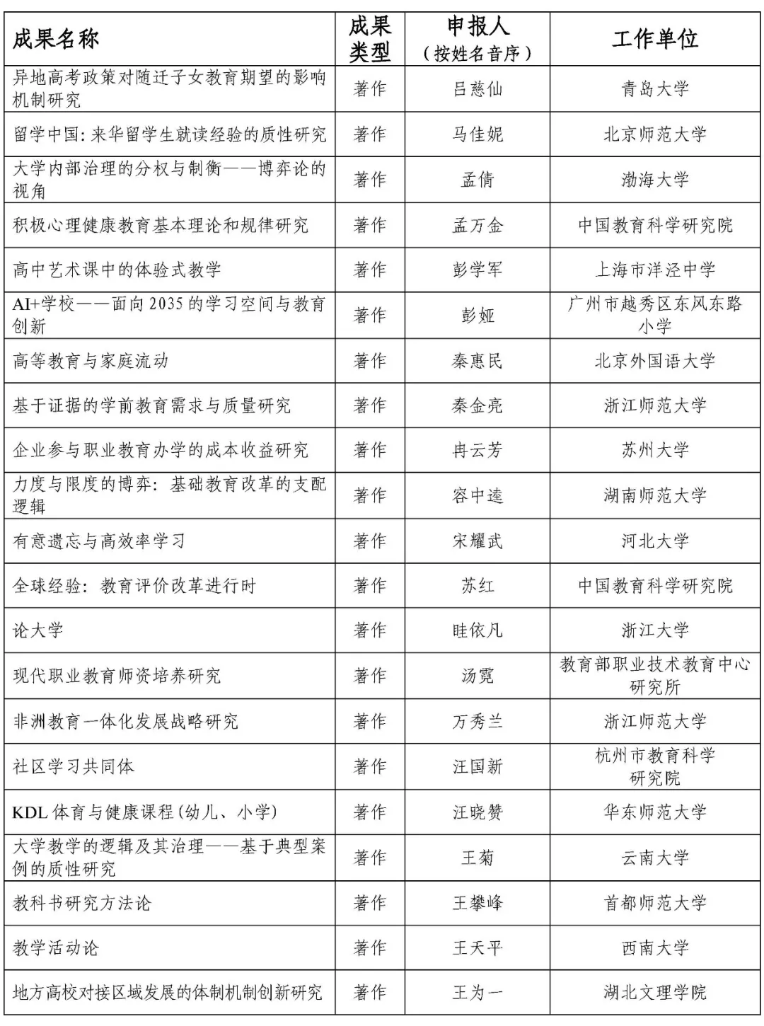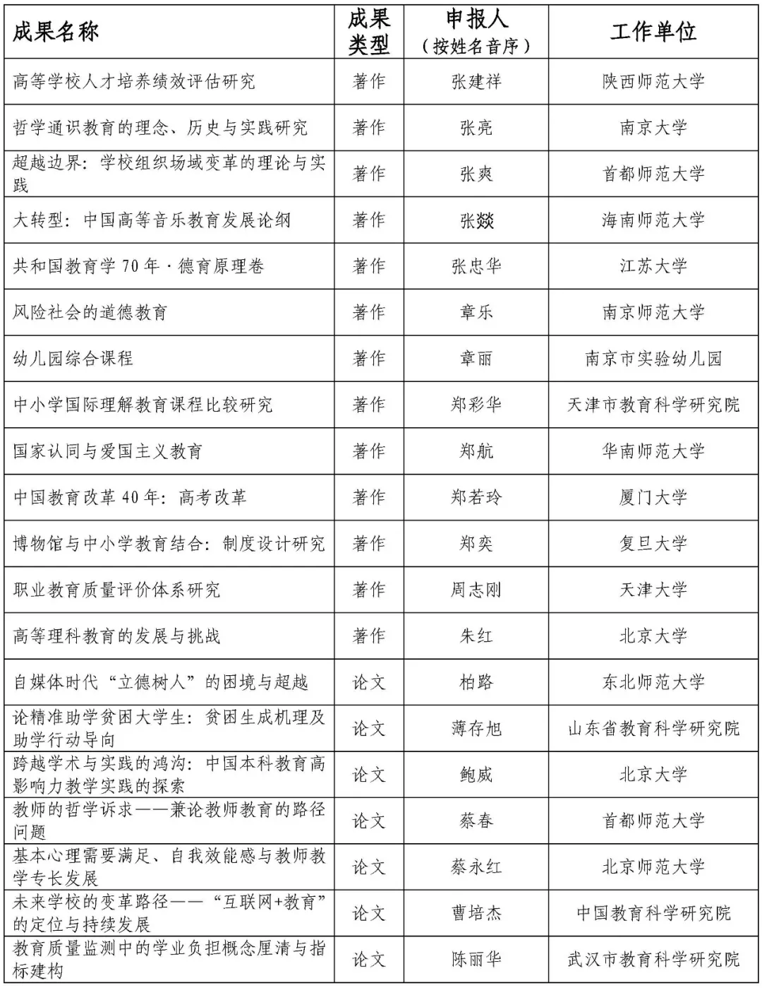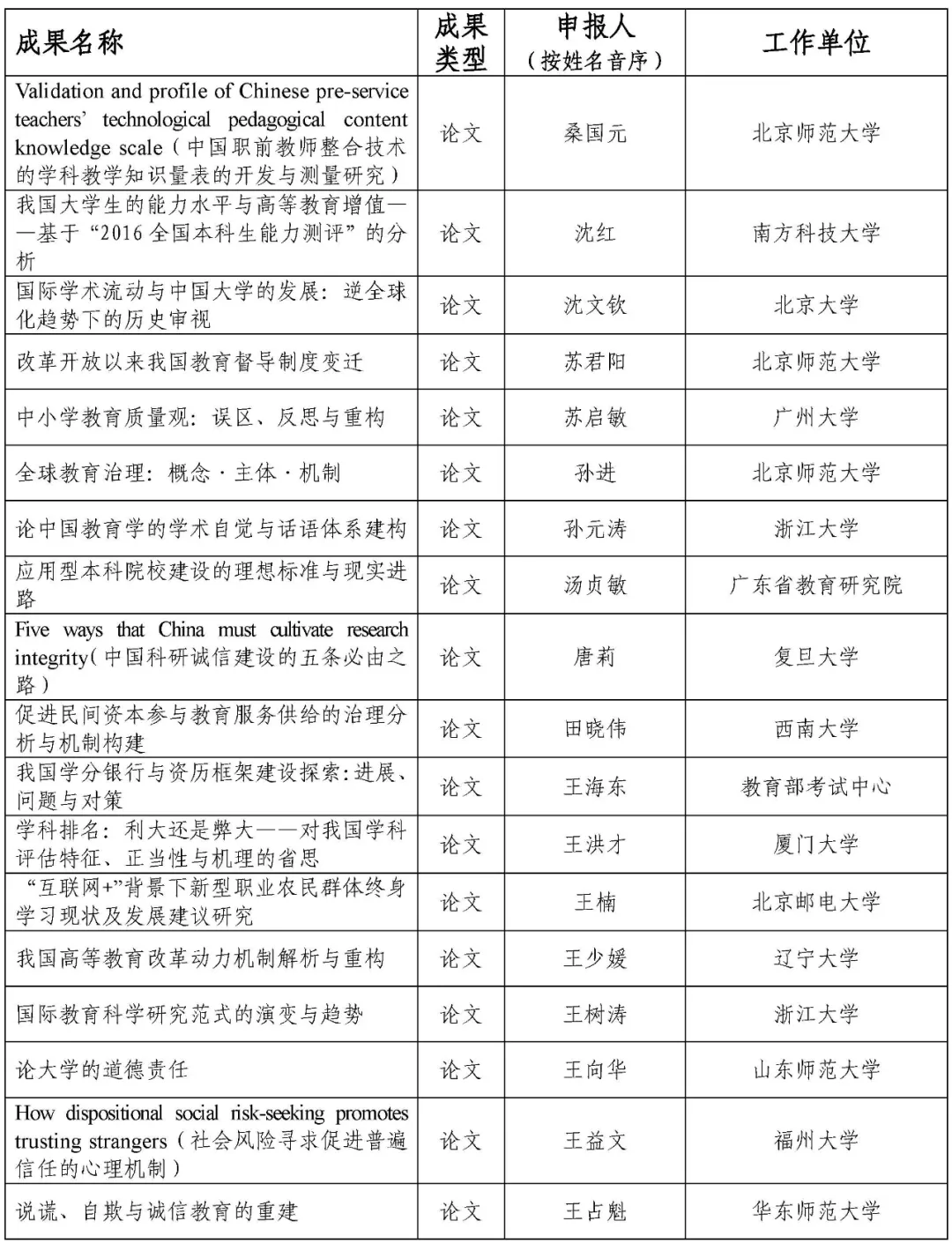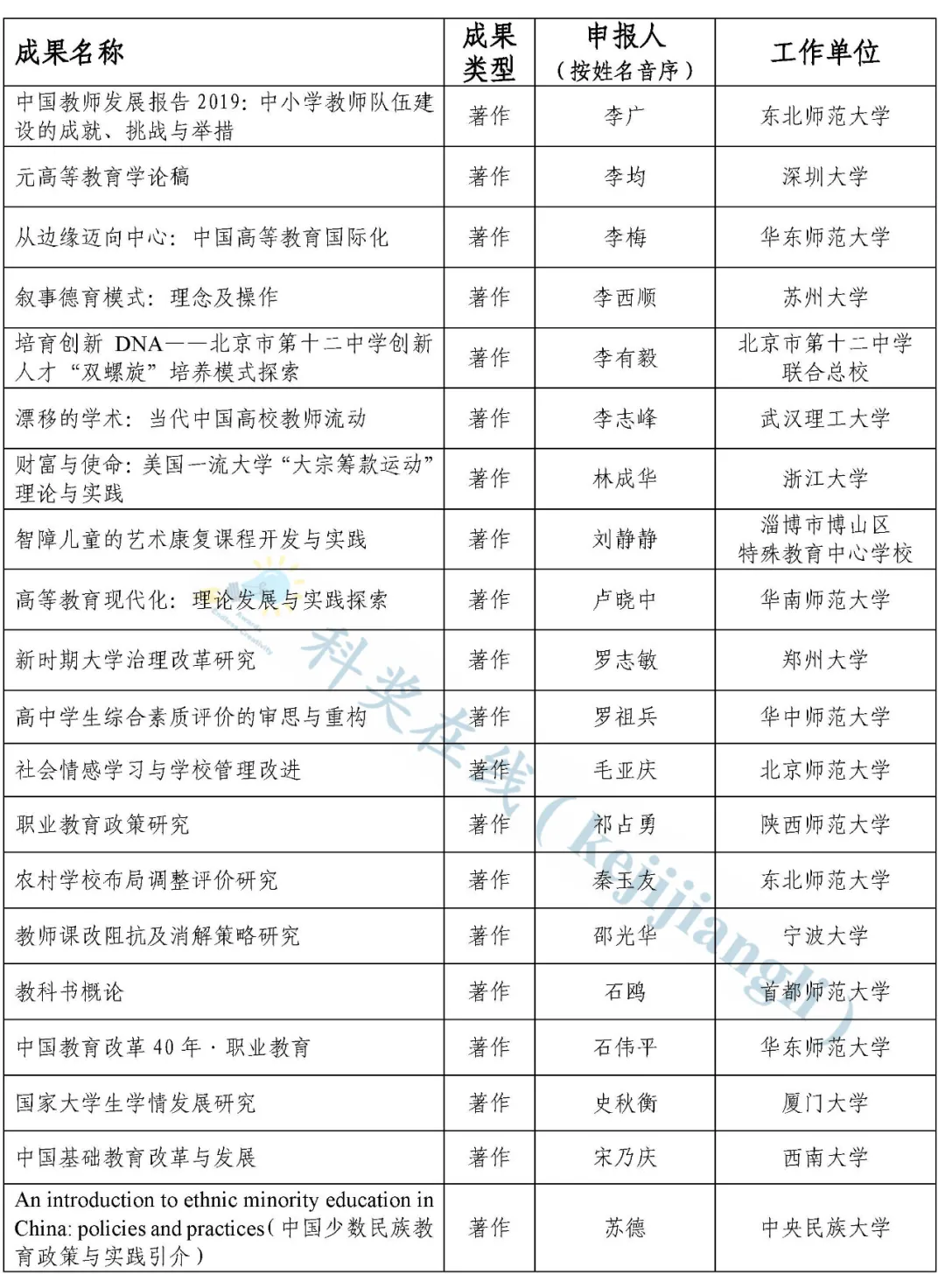 根据《第六届全国教育科学研究优秀成果评选奖励实施办法》规定,经评审,共评选出获奖成果344项,其中一等奖26项,二等奖119项,三等奖199项。现将评选结果进行公示。