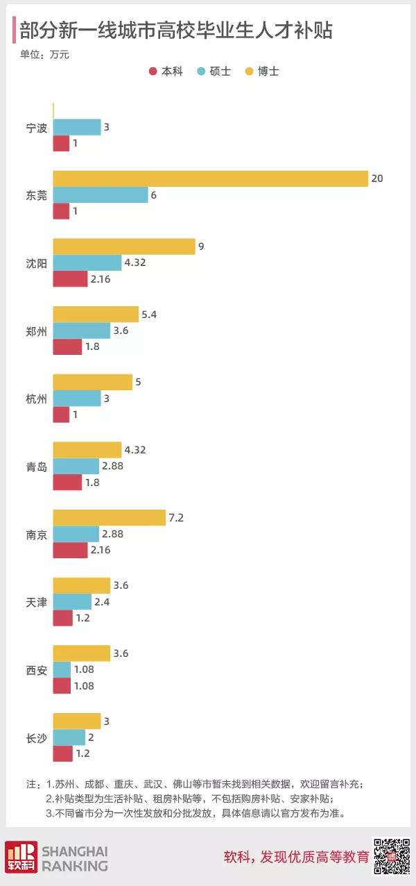 为了吸引高学历毕业生们的青睐,杭州、南京、郑州等城市更是用可观的生活补贴或租房补贴来“款待”引进的人才。