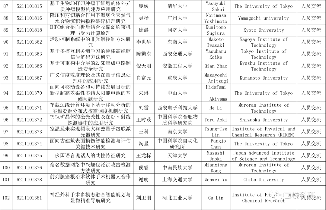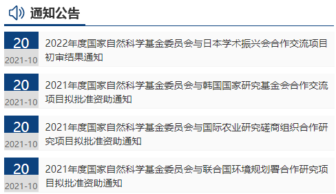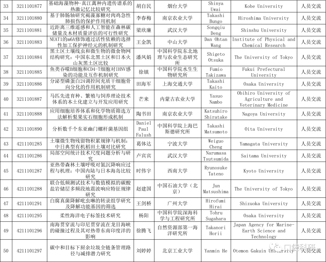 10月20日,国自然基金委公布了与日本学术振兴会(获批143项)、韩国国家研究基金会 (获批32项)、联合国环境规划署(获批7项)、国际农业研究磋商组织(获批12项)等合作交流项目初审/拟批准资助结果通知,共计194项通过初审/拟批准资助。全部名单如下: