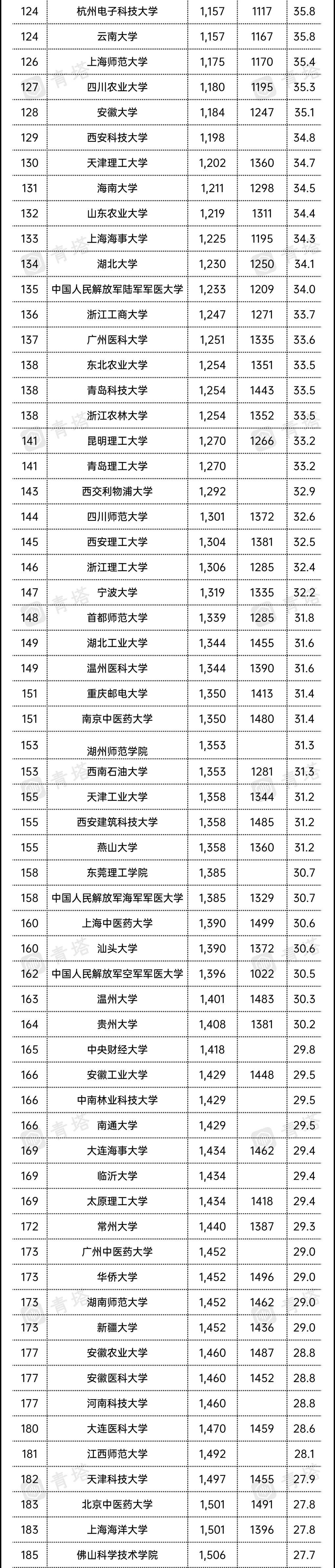 中国289所高校上榜