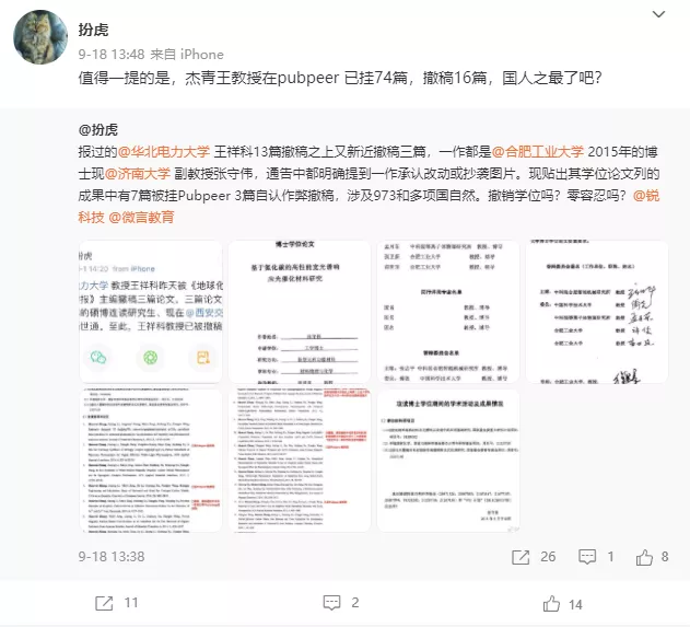 此外,除被撤稿17篇,据微博网友@扮虎统计,目前,王祥科教授已有多达74篇文章在Pubpeer上被质疑。