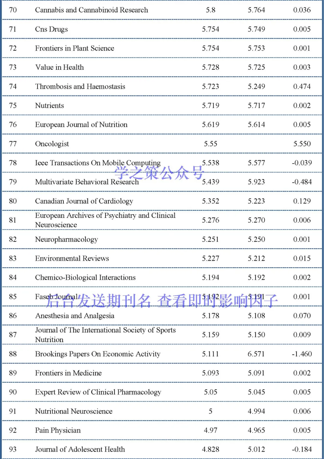 2、除去上述的37本期刊之外,修正后有209本期刊的影响因子上涨,另外43本则出现下降。其中上涨最多的是Journal of Investigational Allergology and Clinical Immunology,从4.333修正为7.033,上涨了2.7。下降最多的是Brookings Papers on Economic Activity,从6.571修正为5.111,下降了1.46。