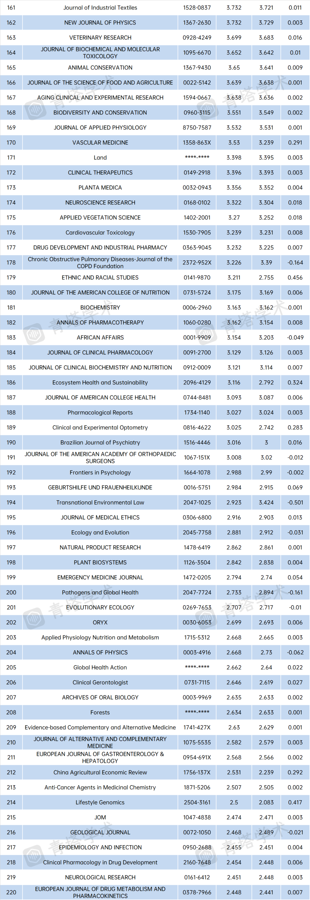 6月30日,2021年JCR影响因子正式发布,而每年下半年科睿唯安还会对影响因子进行修正,所有期刊的IF都以修正后的结果为准。近日,今年的修正版已发布,本次修正版发生变化的期刊有289本。在这次修正版中,共有37本期刊在修正版中重新获得了IF,209本期刊的IF上涨,43本出现下降。名单如下: