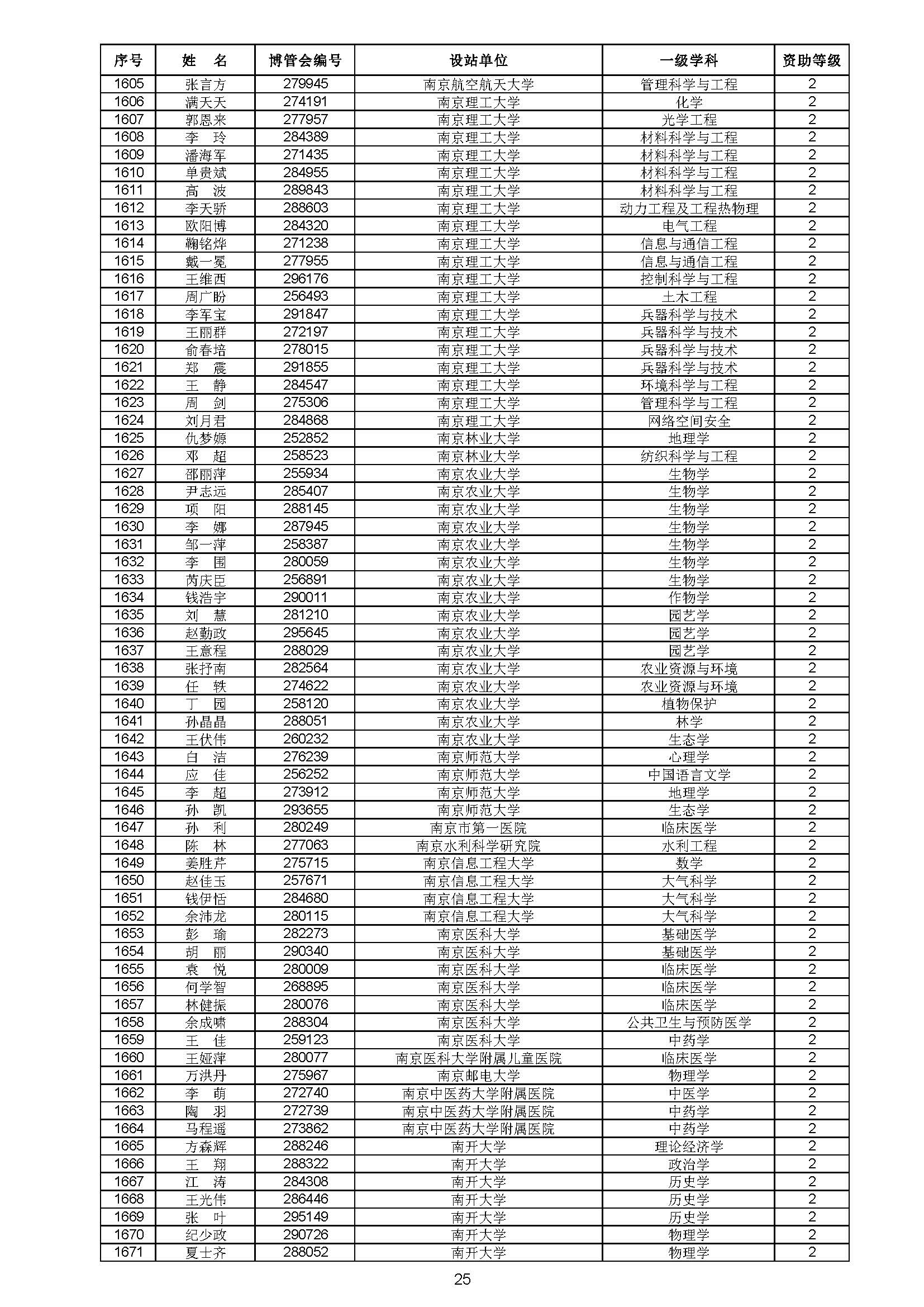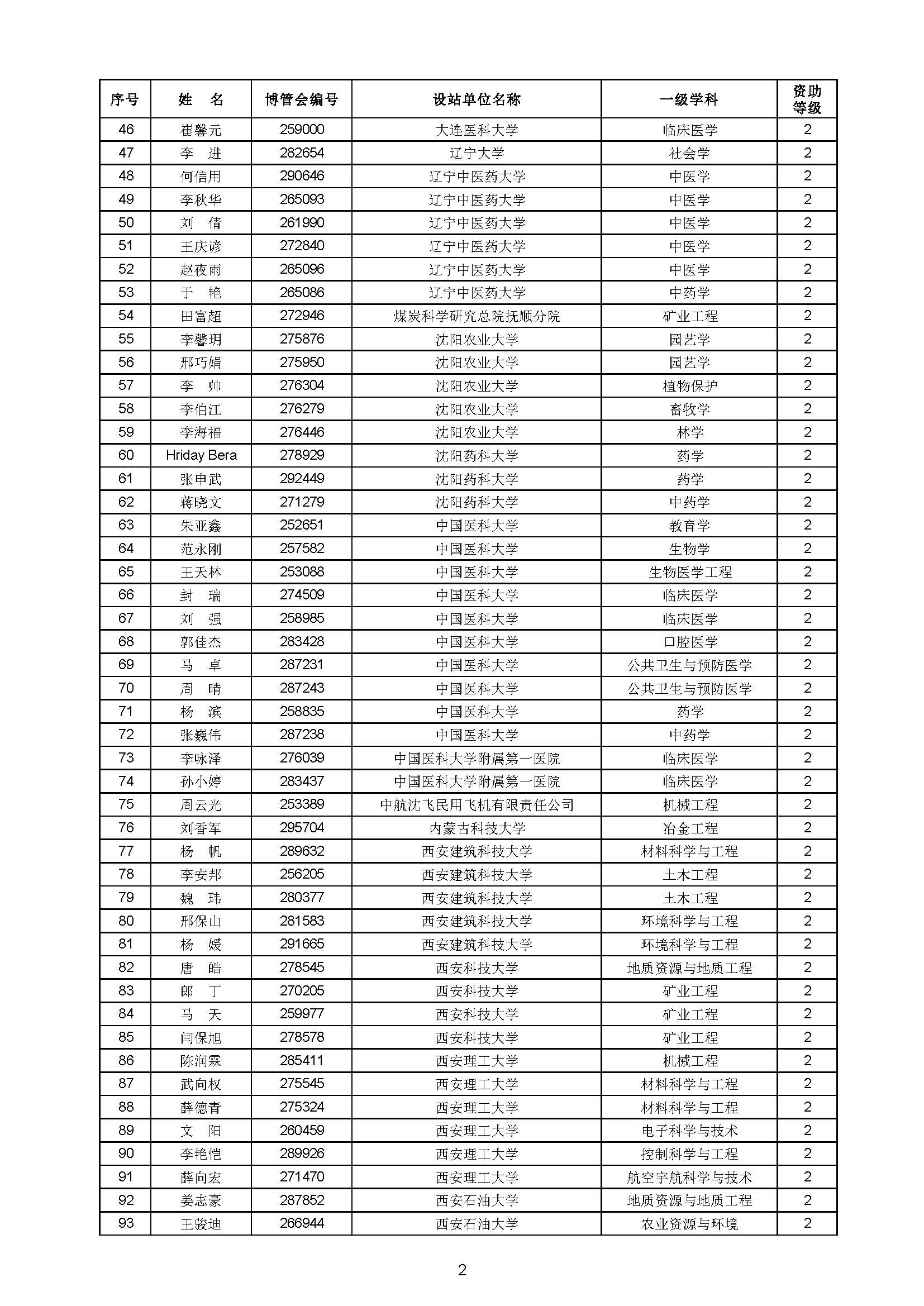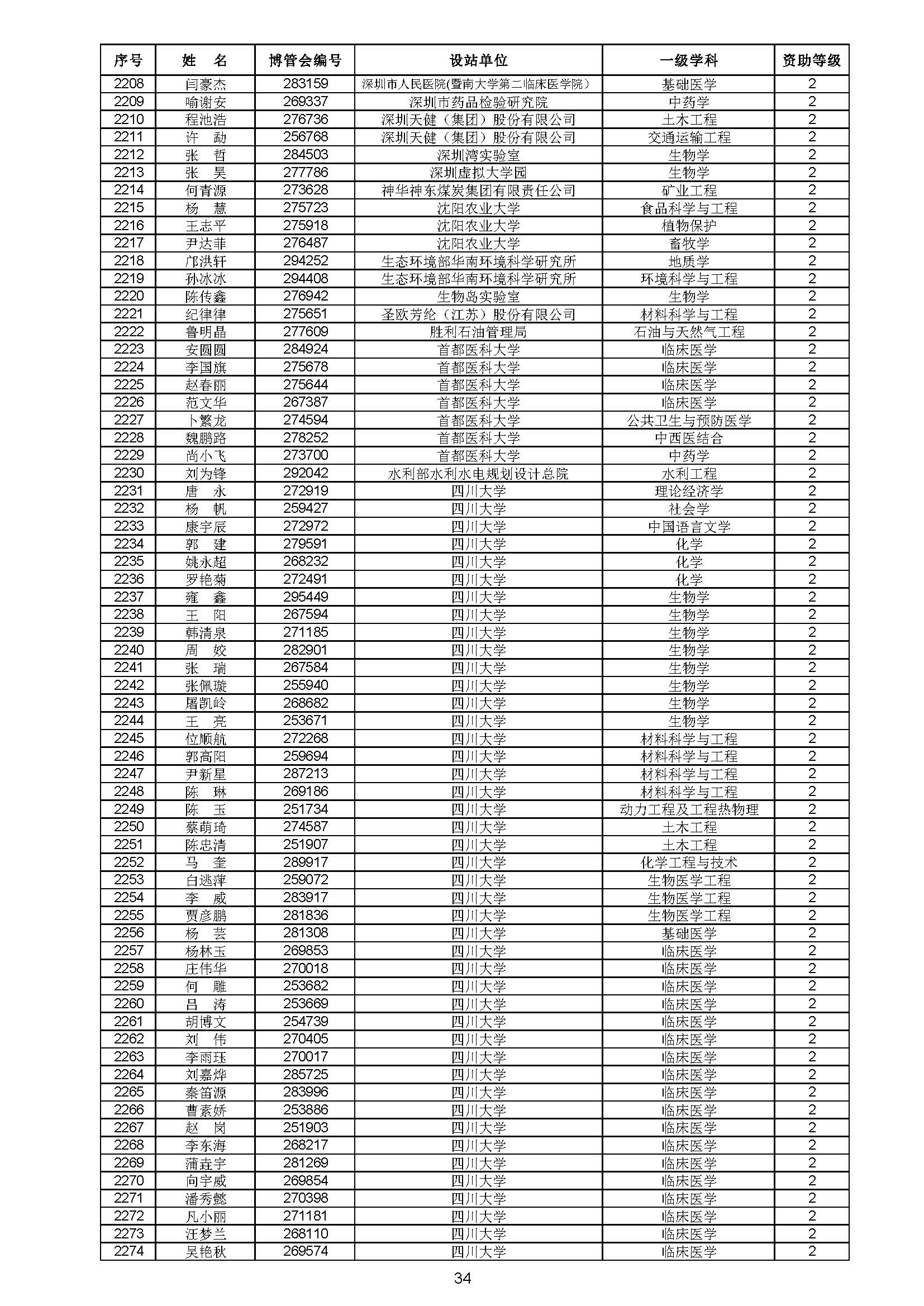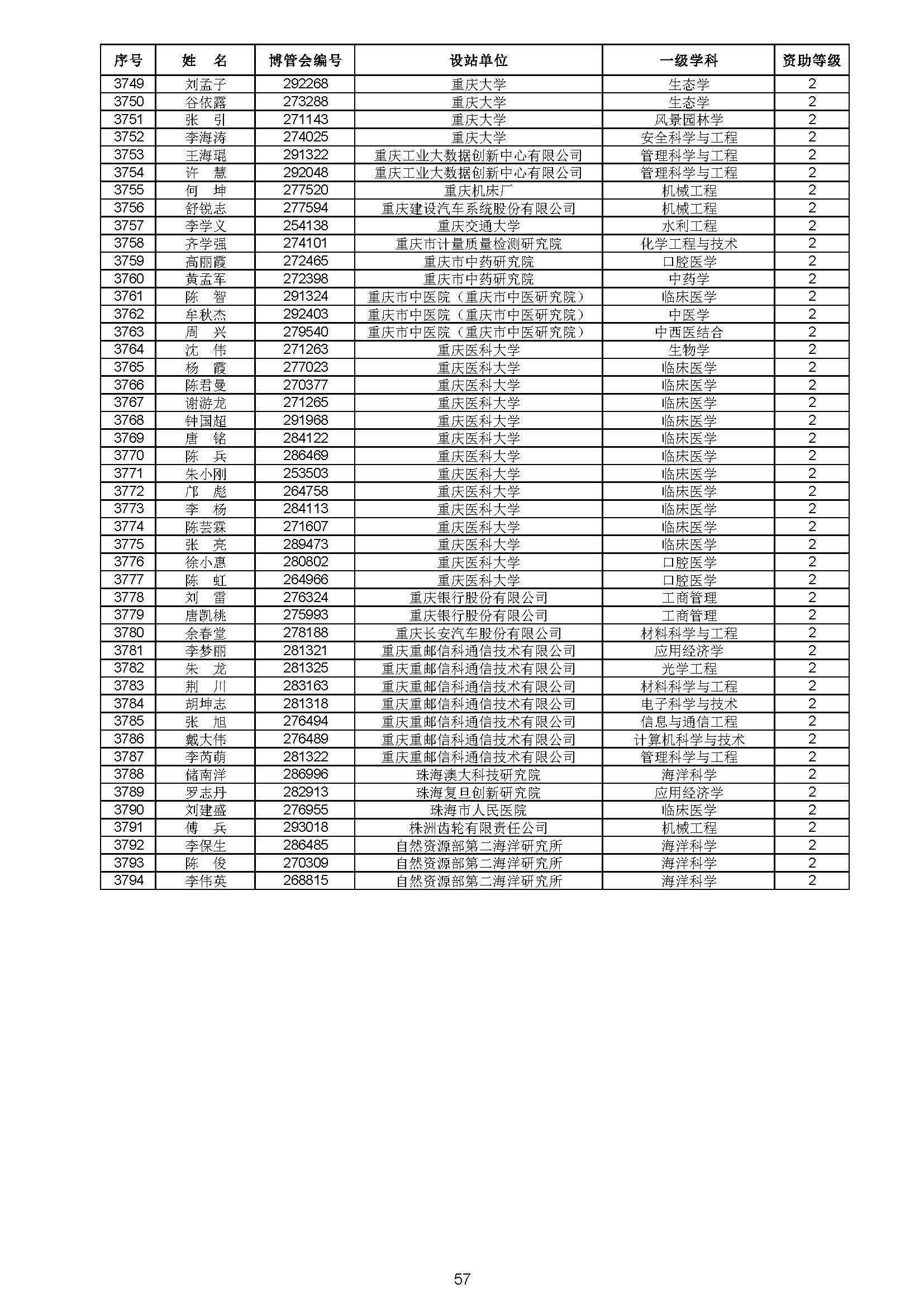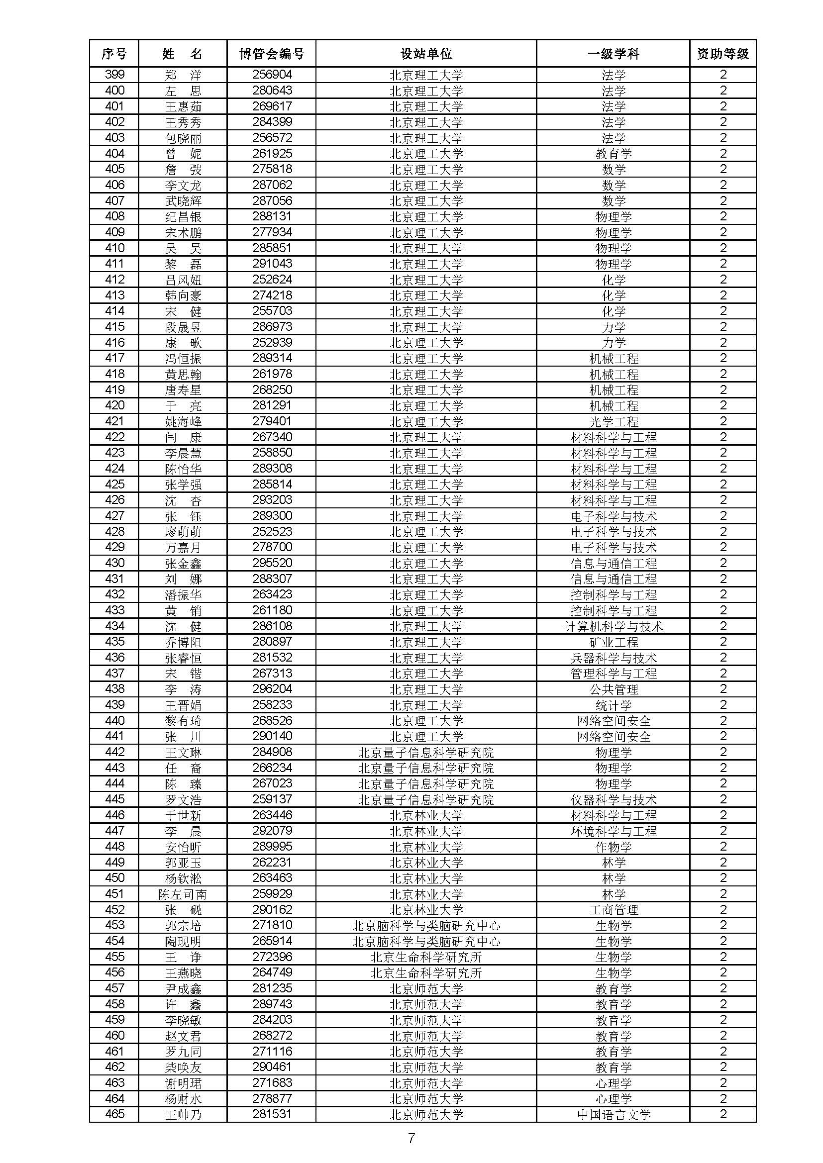 关于对中国博士后科学基金第70批面上资助拟资助人员名单进行公示的通知 中博基字〔2021〕10号 各博士后设站单位: 根据《中国博士后科学基金资助规定》,现对中国博士后科学基金第70批面上资助拟资助人员名单予以公示,军队系统拟资助人员名单由军队系统另行公示。公示期为11月8日至11月14日。 对公示内容有异议者,请于公示期内,以传真、信函或电子邮件方式向中国博士后科学基金会提交书面材料。个人提交的材料请署明真实姓名和联系方式,单位提交的材料请加盖所在单位博士后管理部门公章。期间,未获得资助的博士后研究人员可登录中国博士后科学基金管理信息系统查看专家评审结果。 通信地址:北京市海淀区学院路30号中国博士后科学基金会博士后基金管理处(100083) 联系人:池老师 电话:010-82387704 传真:010-62335023 邮箱:jijinchu@126.com 附件: 中国博士后科学基金会 2021年11月8日 第70批面上资助拟资助人员名单 第70批面上资助地区专项资助计划拟资助人员名单