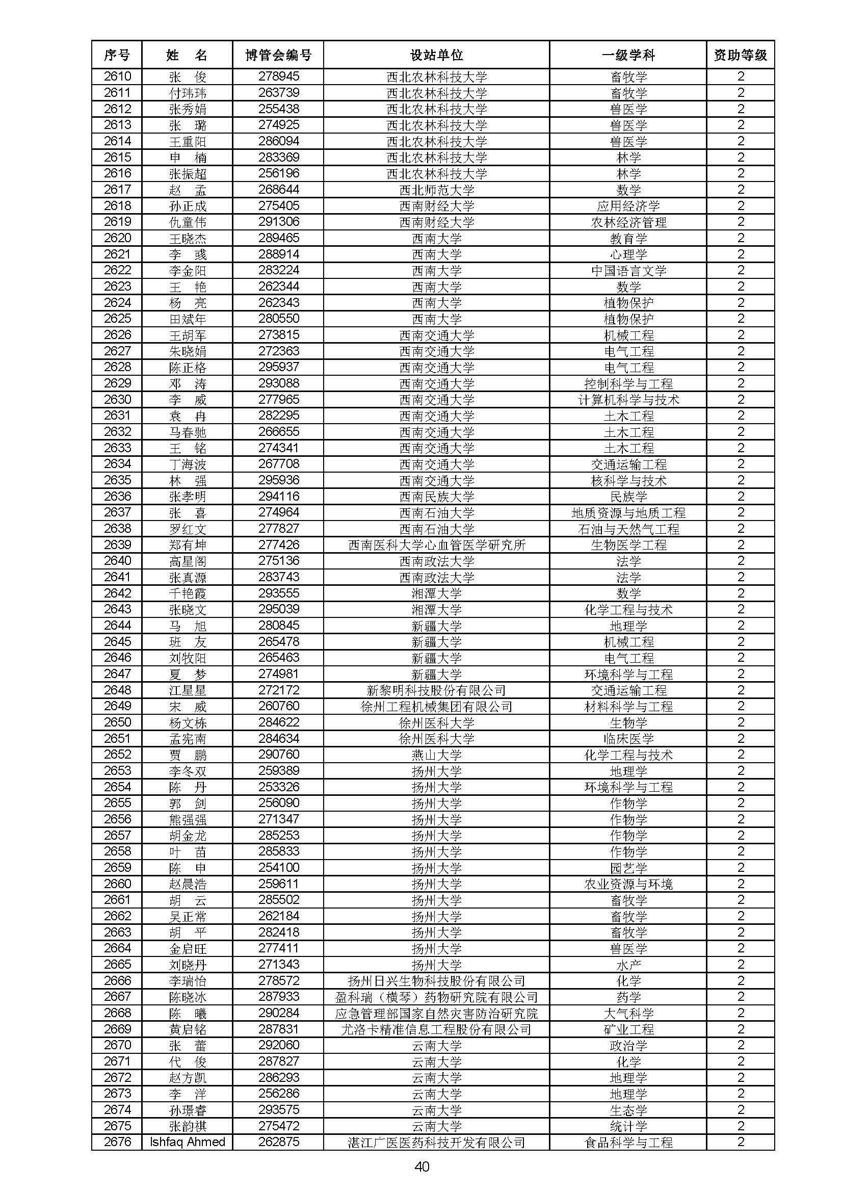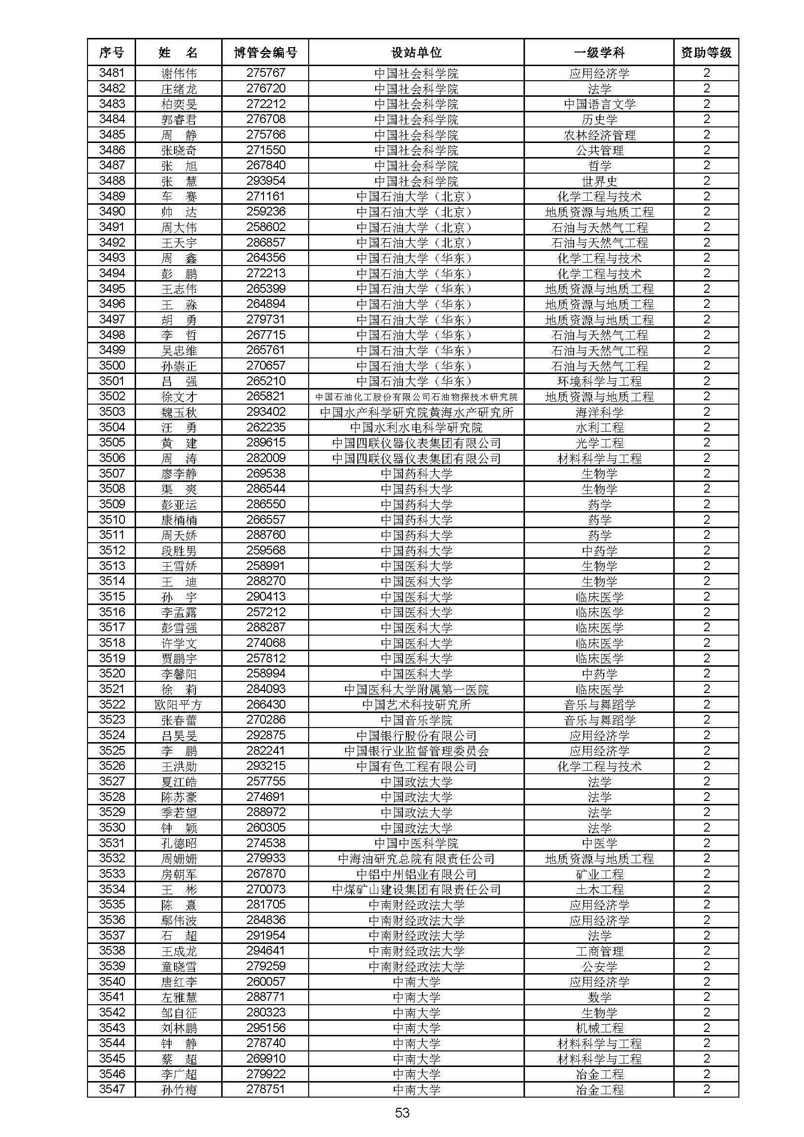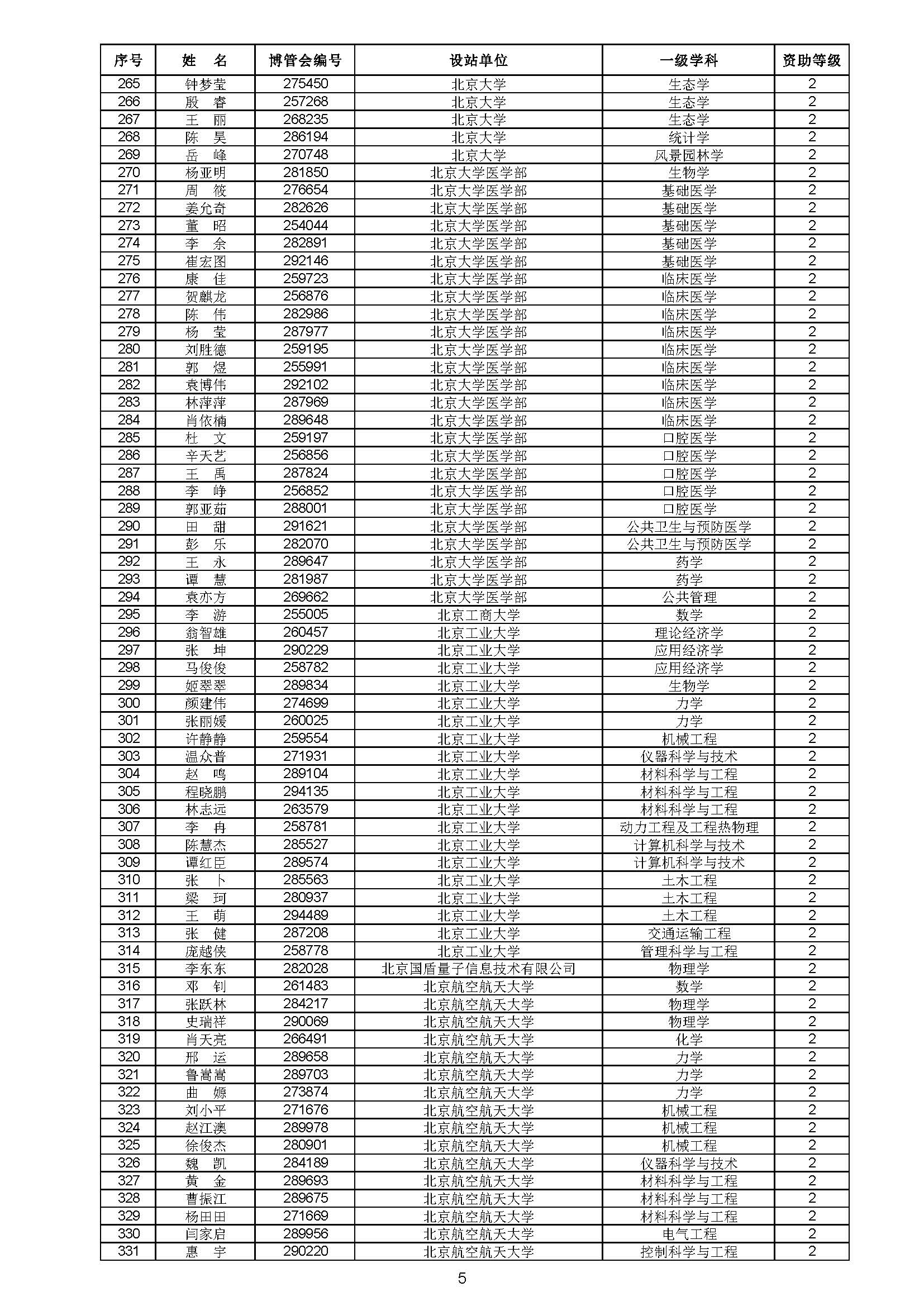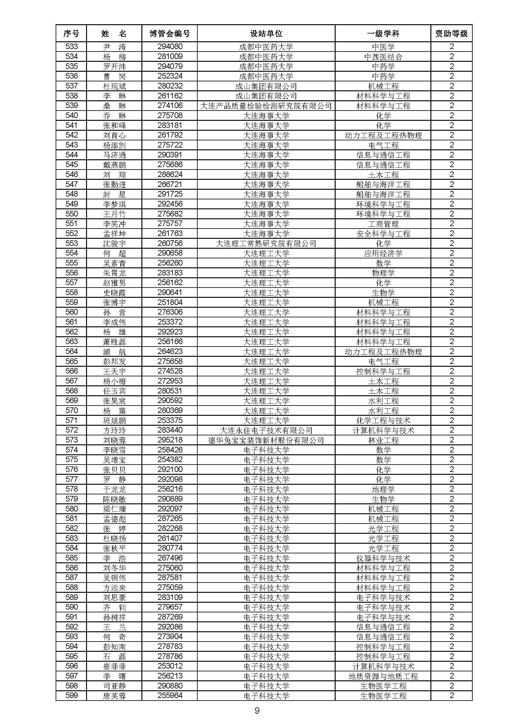 关于对中国博士后科学基金第70批面上资助拟资助人员名单进行公示的通知 中博基字〔2021〕10号 各博士后设站单位: 根据《中国博士后科学基金资助规定》,现对中国博士后科学基金第70批面上资助拟资助人员名单予以公示,军队系统拟资助人员名单由军队系统另行公示。公示期为11月8日至11月14日。 对公示内容有异议者,请于公示期内,以传真、信函或电子邮件方式向中国博士后科学基金会提交书面材料。个人提交的材料请署明真实姓名和联系方式,单位提交的材料请加盖所在单位博士后管理部门公章。期间,未获得资助的博士后研究人员可登录中国博士后科学基金管理信息系统查看专家评审结果。 通信地址:北京市海淀区学院路30号中国博士后科学基金会博士后基金管理处(100083) 联系人:池老师 电话:010-82387704 传真:010-62335023 邮箱:jijinchu@126.com 附件: 中国博士后科学基金会 2021年11月8日 第70批面上资助拟资助人员名单 第70批面上资助地区专项资助计划拟资助人员名单