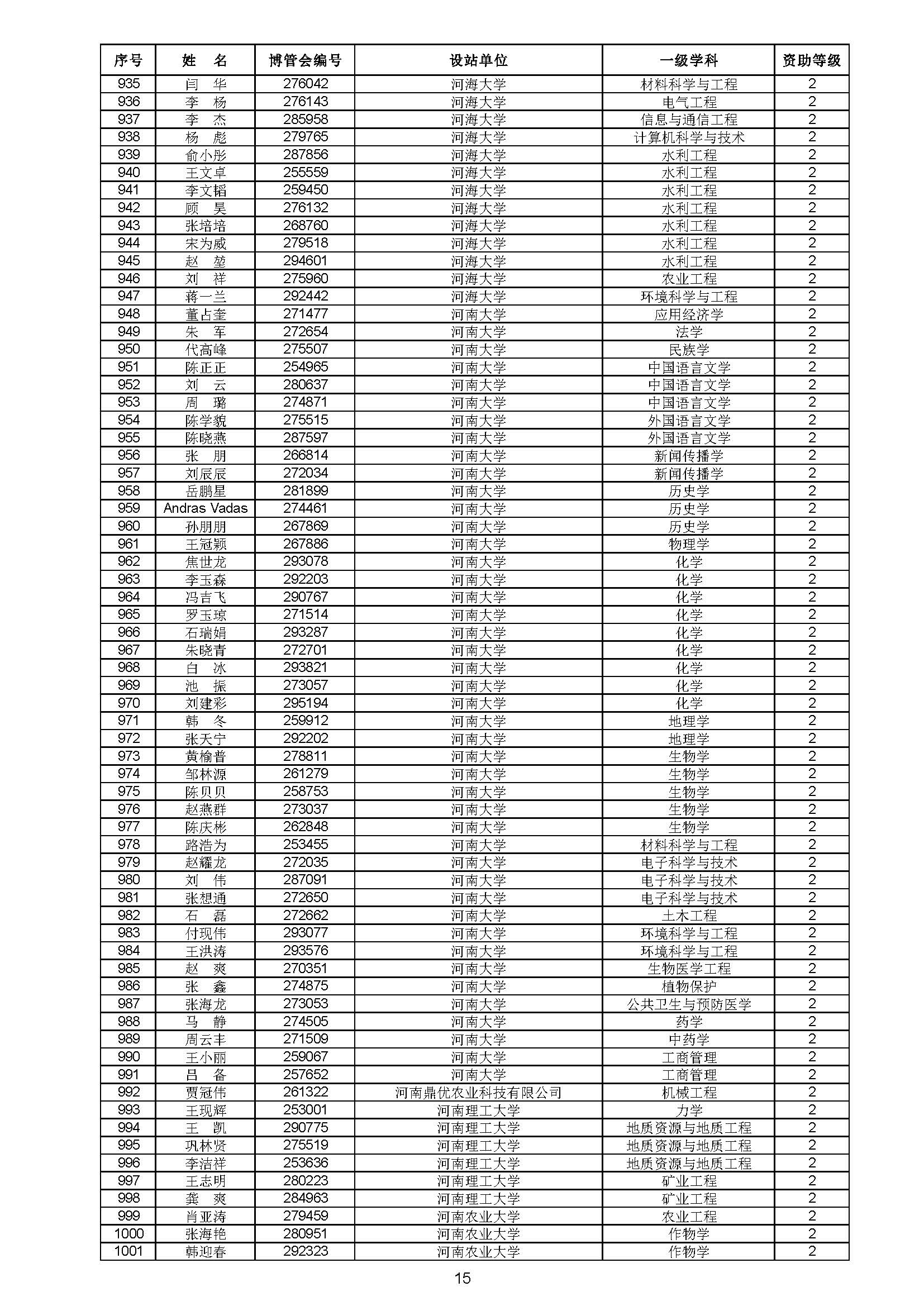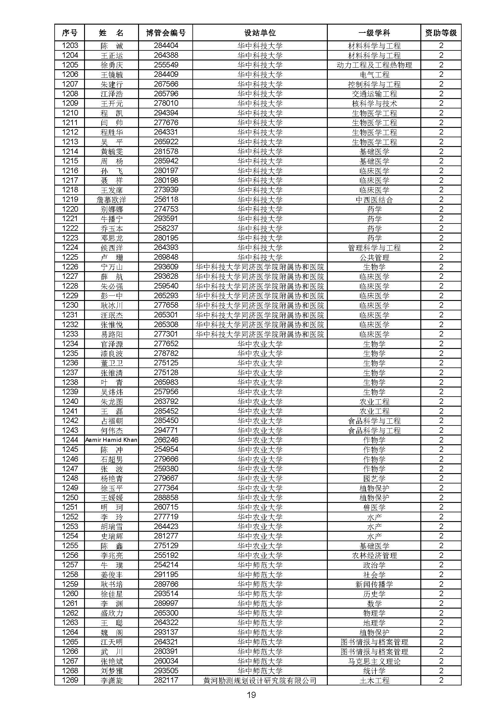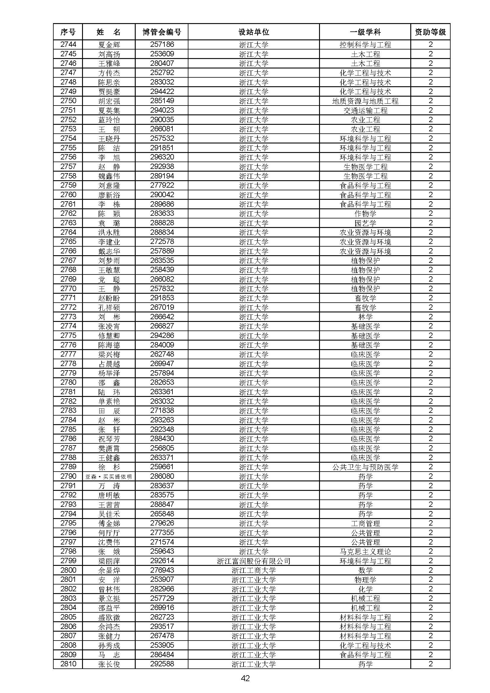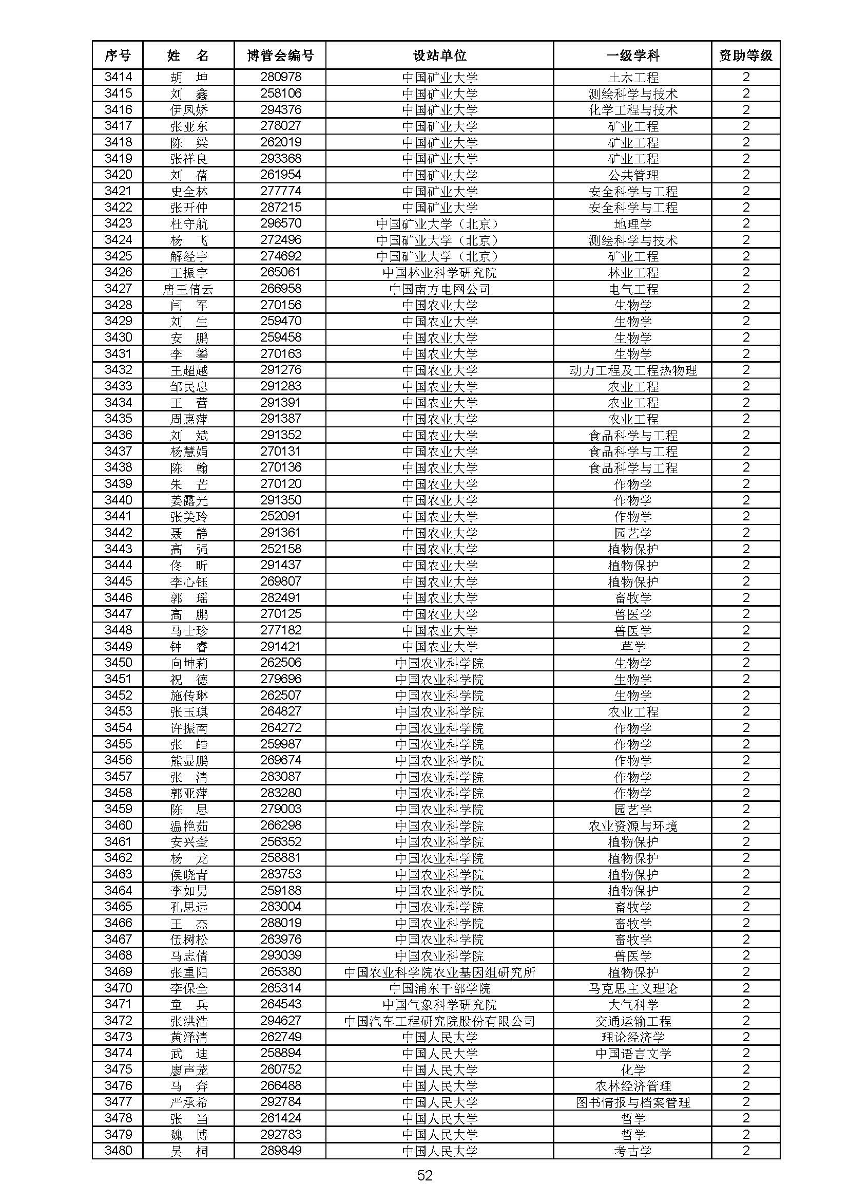 关于对中国博士后科学基金第70批面上资助拟资助人员名单进行公示的通知 中博基字〔2021〕10号 各博士后设站单位: 根据《中国博士后科学基金资助规定》,现对中国博士后科学基金第70批面上资助拟资助人员名单予以公示,军队系统拟资助人员名单由军队系统另行公示。公示期为11月8日至11月14日。 对公示内容有异议者,请于公示期内,以传真、信函或电子邮件方式向中国博士后科学基金会提交书面材料。个人提交的材料请署明真实姓名和联系方式,单位提交的材料请加盖所在单位博士后管理部门公章。期间,未获得资助的博士后研究人员可登录中国博士后科学基金管理信息系统查看专家评审结果。 通信地址:北京市海淀区学院路30号中国博士后科学基金会博士后基金管理处(100083) 联系人:池老师 电话:010-82387704 传真:010-62335023 邮箱:jijinchu@126.com 附件: 中国博士后科学基金会 2021年11月8日 第70批面上资助拟资助人员名单 第70批面上资助地区专项资助计划拟资助人员名单