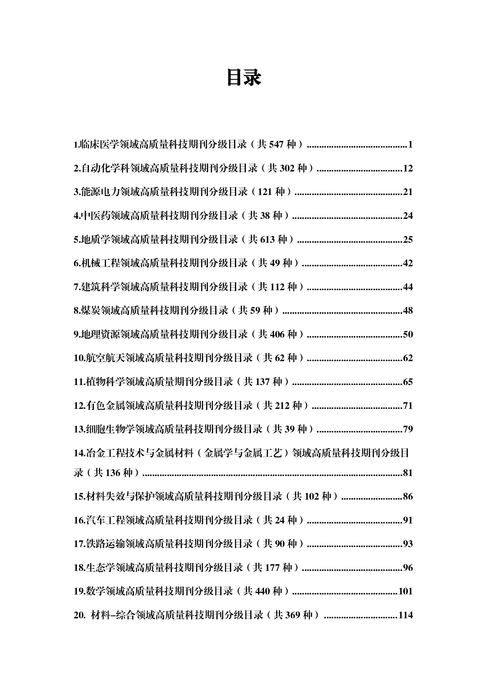 高质量科技期刊分级目录总汇