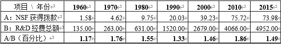 表1:NSF年度拨款与美国年度科技研发总经费(单位:亿美元)