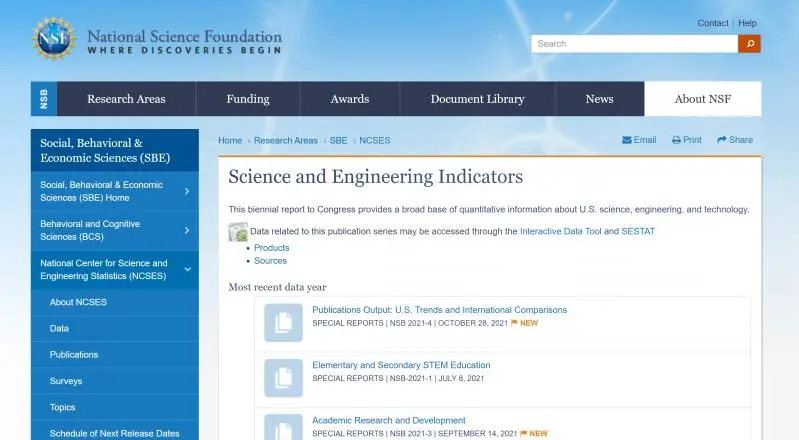 美国历年Science & Engineering Indicators中的数据,图为2018年度的《美国科学与工程指标》封面