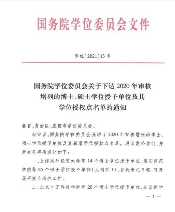 文中所附《通知》截图透露,上海对外经贸大学等14个博士学位授予单位,自批准之日起,可开展研究生培养工作。