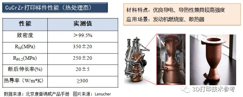 铜及铜合金是一类有重要应用的关键材料。由于具有优良的导热、导电、延展、耐腐蚀等特性,铜在航空航天、武器装备某些应用场合是必选材料。在增材制造中,铜材料应用较晚,但近年来呈现快速发展趋势,尤其国防军工领域铜合金增材制造应用不断取得重要进展,更促进了铜材料增材制造的发展。近两年增材制造行业能够明显感受到铜合金需求的增长,不断有新用户着手开发铜合金增材制造应用,材料也从早期易于成型的铸造锡青铜转向纯铜和各类高强高导铜。有研究报告称,2019-2027年期间,全球铜增材制造市场将以51%的年复合增长率增长。尽管当前铜合金打印还存在诸多工艺和材料问题,但可以预见,铜在金属增材制造中将占有一席之地。