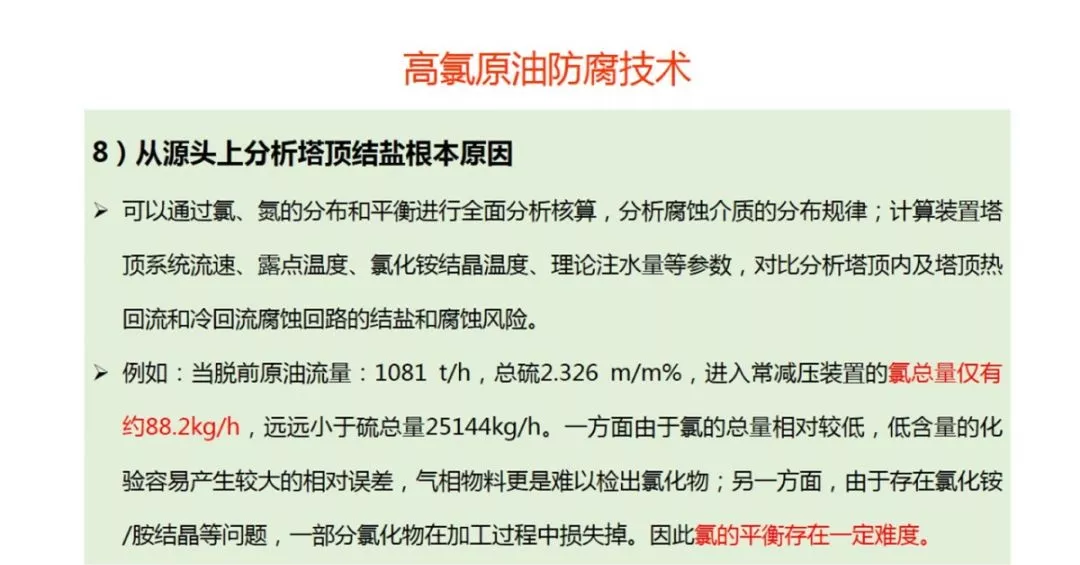 关于铵盐:原油中的含氮化合物在常减压装置分解率较低,防止积盐的重要途径是控制原料携带的NH3含量并阻止其在分馏塔顶聚集;