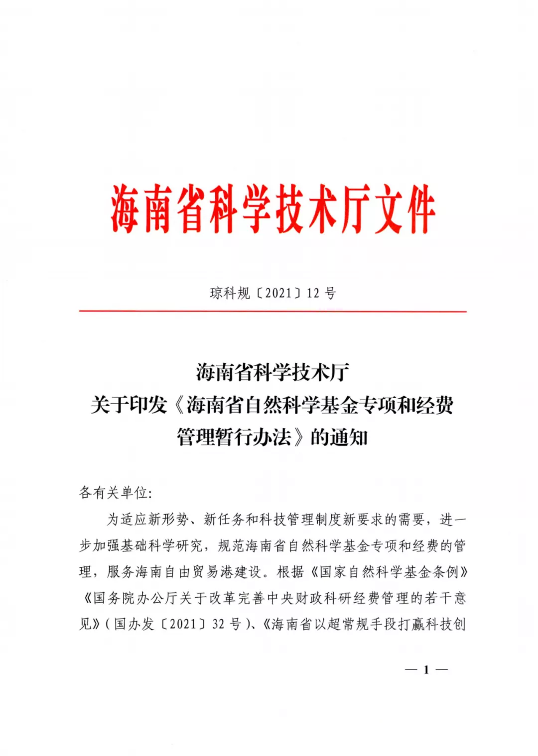 1. 国务院办公厅《关于改革完善中央财政科研经费管理的若干意见》国办发〔2021〕32号