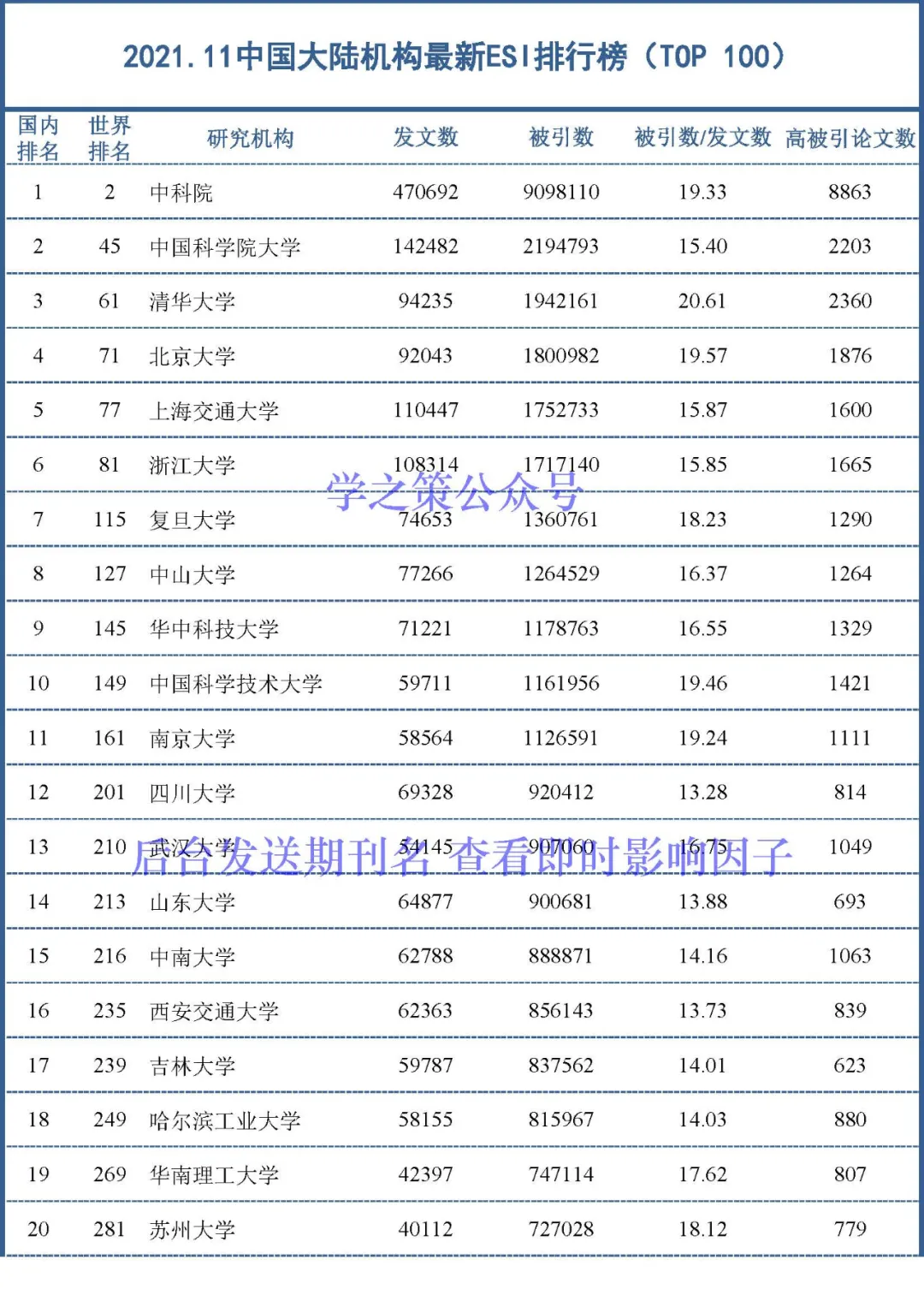 刚刚,最新ESI高被引阈值及排名发布!