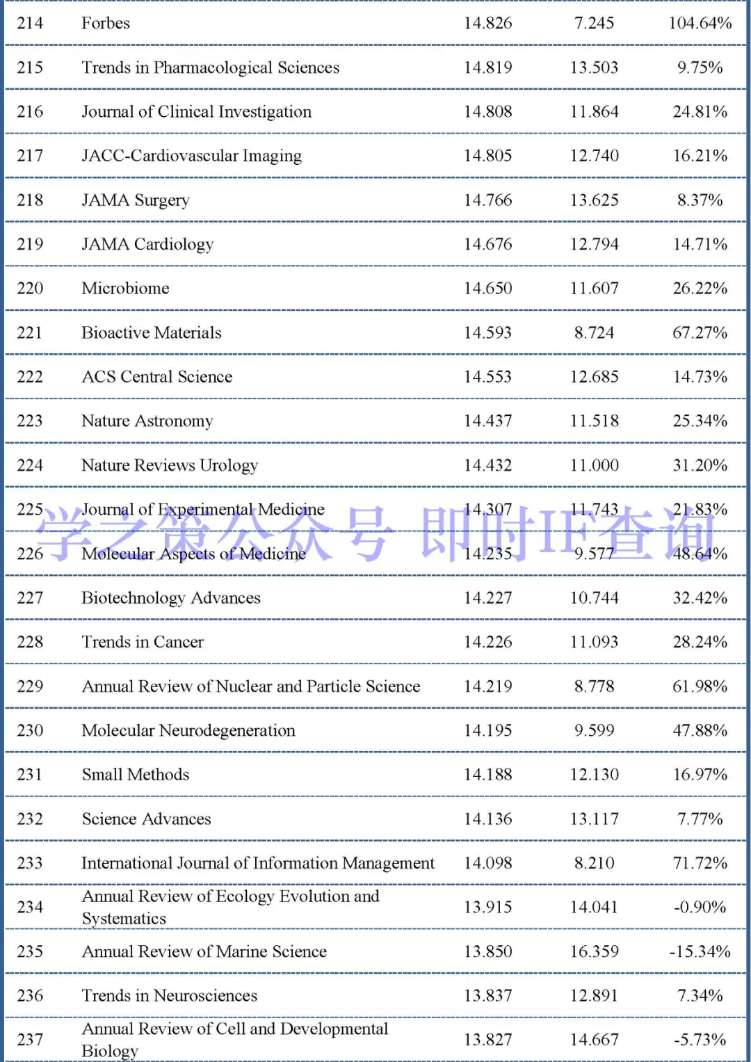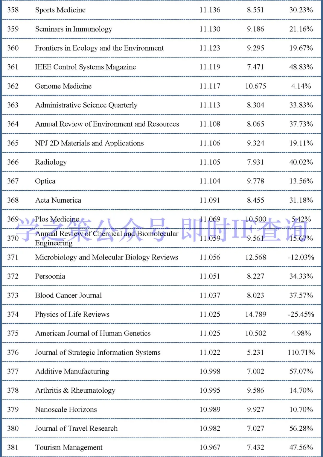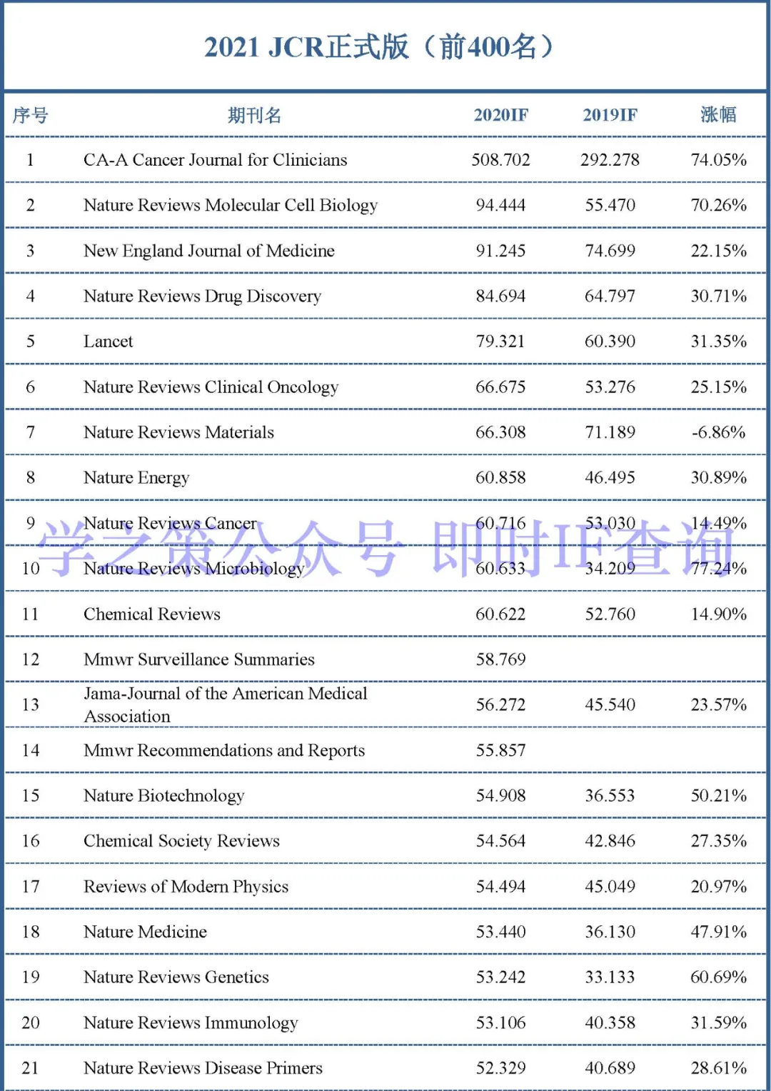 6月30日,2021年最新SCI影响因子(Impact Factor,IF)出炉。