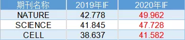 备受关注的三大刊(NATURE、SCIENCE、CELL)2020年度影响因子分别为: