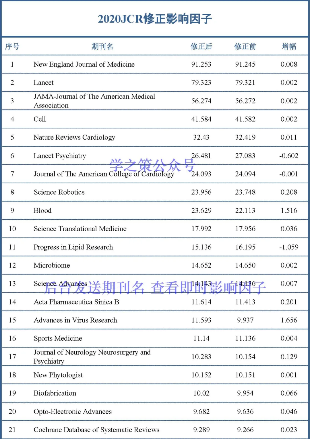 2020JCR影响因子于2021年6月30日正式发布,而按照常规,每年的下半年科睿唯安还会对影响因子进行修正,所有期刊的影响因子都是以修正后的结果为准。