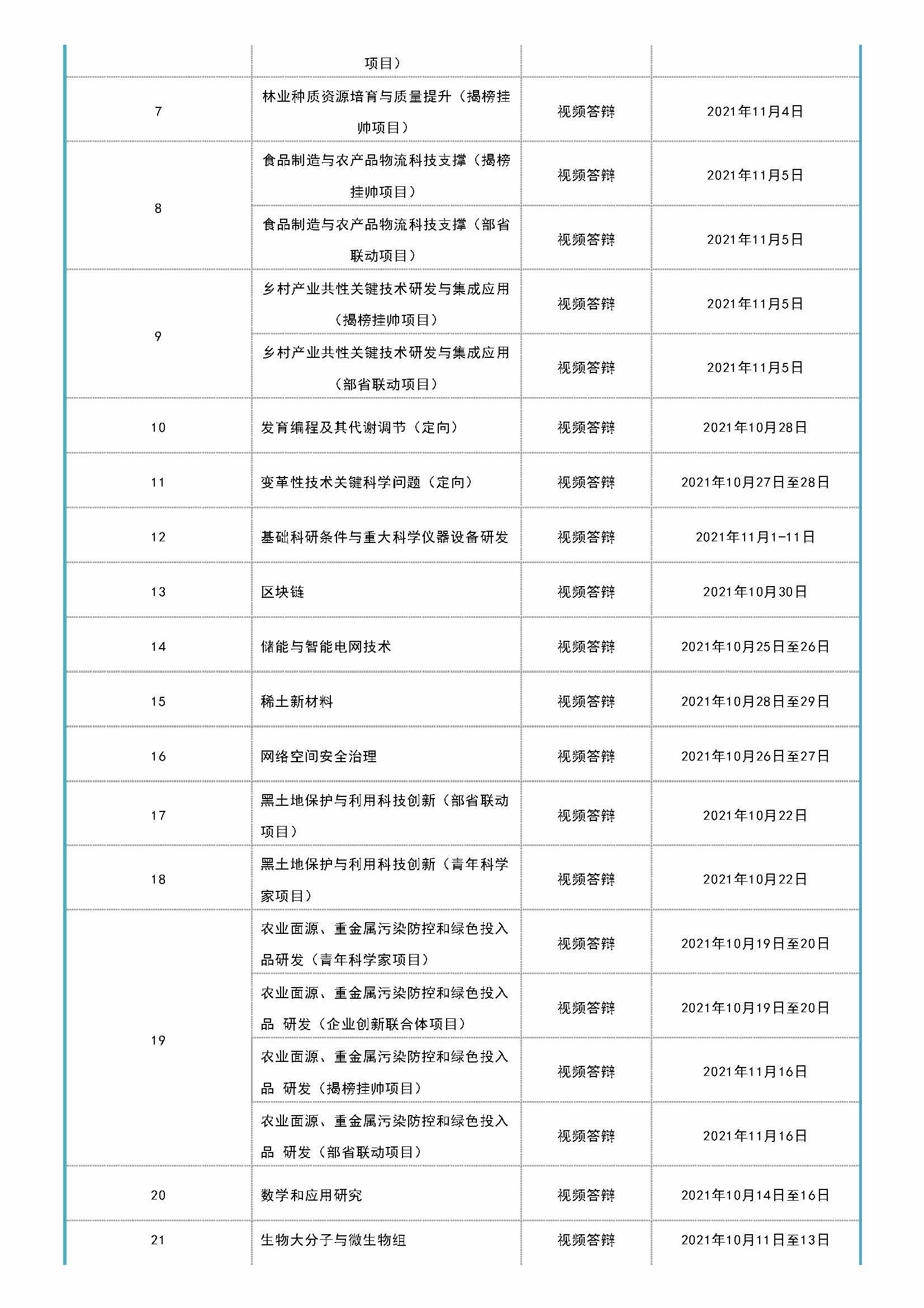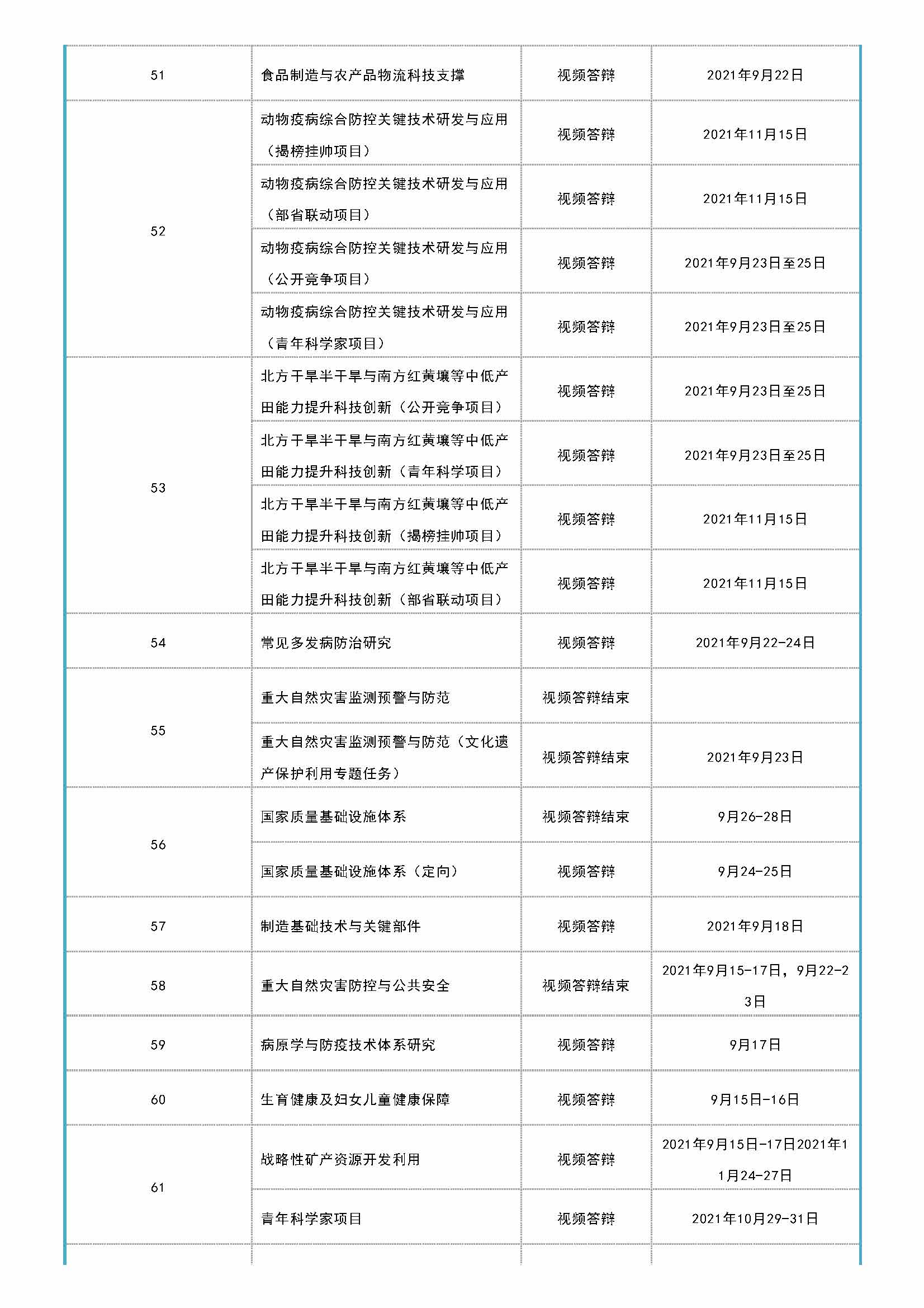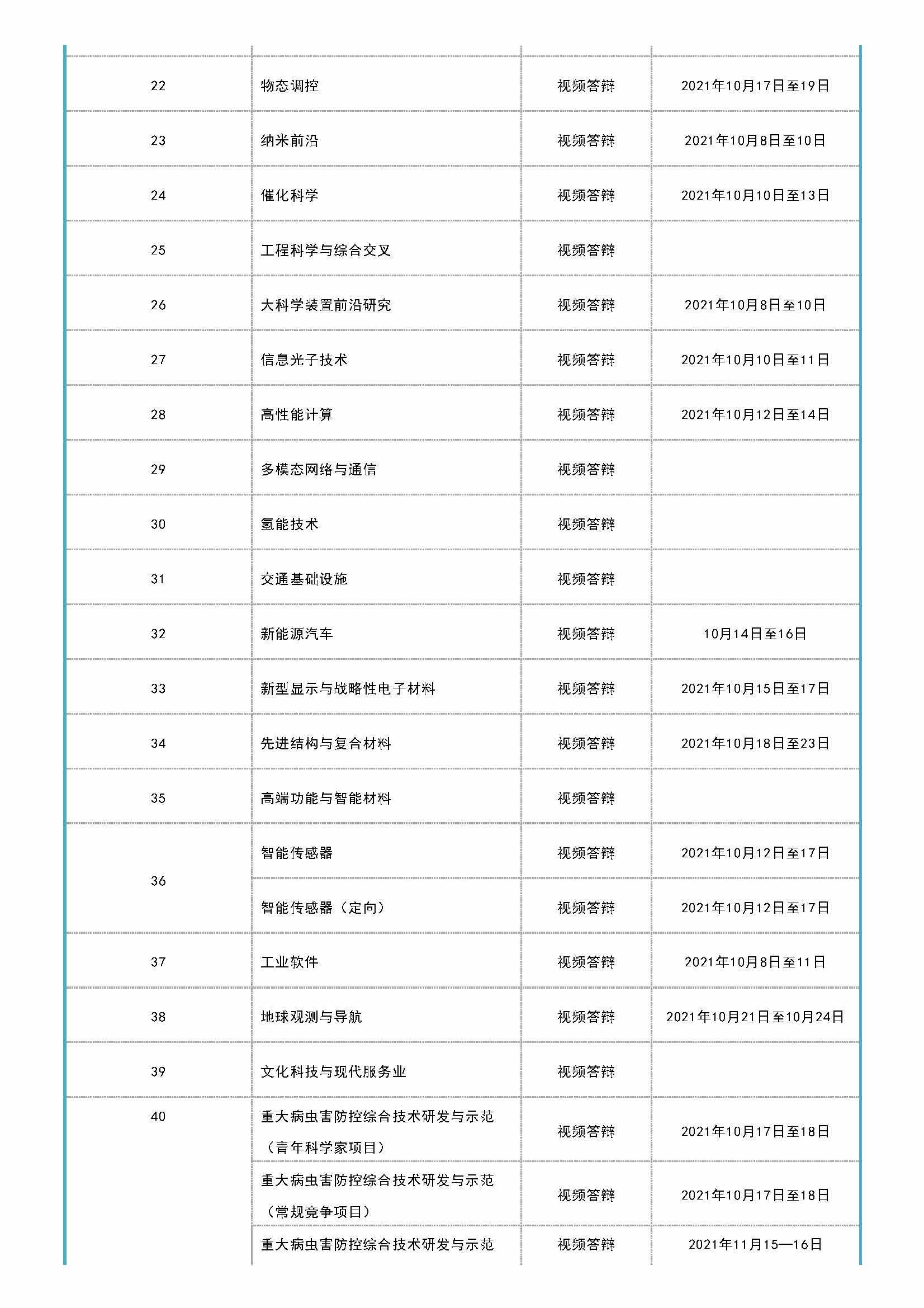 答辩评审要求:1. 公开竞争项目答辩限时45分钟,其中汇报15分钟,专家质疑30分钟;青年科学家项目答辩限时30分钟,其中汇报15分钟,专家质疑15分钟。请答辩人严格遵守答辩时间,简明扼要回答评委提问,若超时,评审系统将自动切入下一个项目。2. 项目负责人原则上须亲自参加答辩。项目负责人因故无法参加的,应委托项目组其他成员代替,并于评审会前2日出具由项目牵头申报单位盖章的说明文件,并将扫描件发送至专项指定邮箱。参与答辩的应为项目(课题)负责人或项目骨干,原则上不超过3人,无关人员不得进入答辩评审场所。3. 项目报告采取PPT方式,报告重点为项目的研究内容、目标设置及技术路线、任务分解和进度安排、研发团队及工作基础、预期成果与风险分析等方面内容。4. 答辩人员须按答辩安排时间提前1小时抵达指定的视频答辩会议室,主动服从答辩会议室主管部门指挥,按要求做好报告准备工作。项目答辩人员未能按时参加答辩的,视为自动放弃评审,不再另行安排答辩。5. 因意外情况出现视频评审系统无法连接等情形时,将启用应急处理机制,在当日其它空闲时段另行安排答辩评审,保证答辩评审的完整进行。6. 评审遵从公平、公正、公开的原则,项目申报单位及相关人员不得有影响专家评审公正性的违规违纪行为,一经查实,将取消项目评审资格。