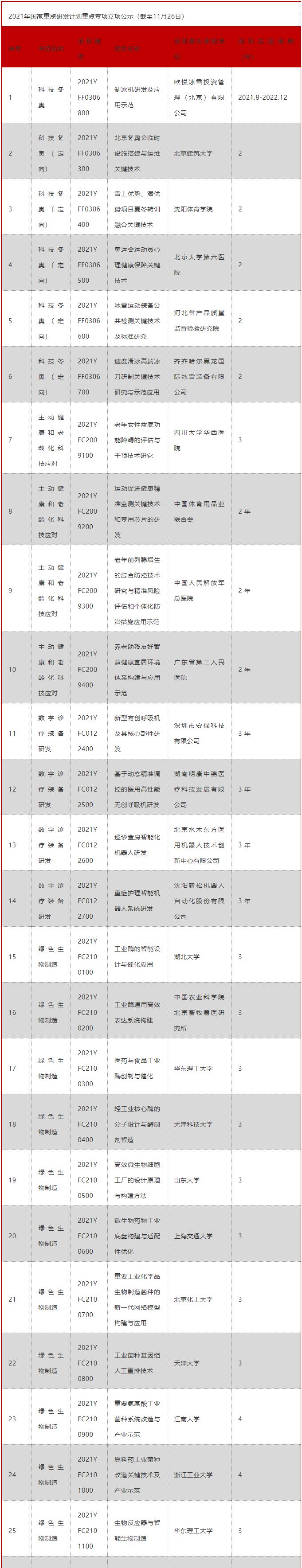 以下为动源君统计的2021年国家重点研发计划重点专项立项情况,仅供读者参考,具体以官方信息为主。