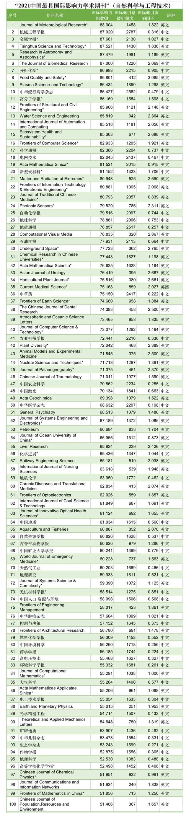 以Journal of Meteorological Research、《机械工程学报》《金属学报》为代表的175种科技类学术期刊入选“中国国际影响力优秀学术期刊(自然科学与工程技术)”。