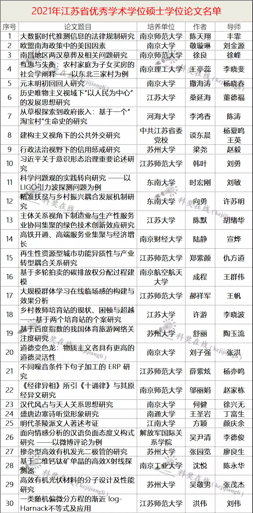 截止到2021年12月8日,2021年度各省市、学会、协会公布的优秀博士学位论文573篇、优秀硕士学位论文832篇,具体如下: