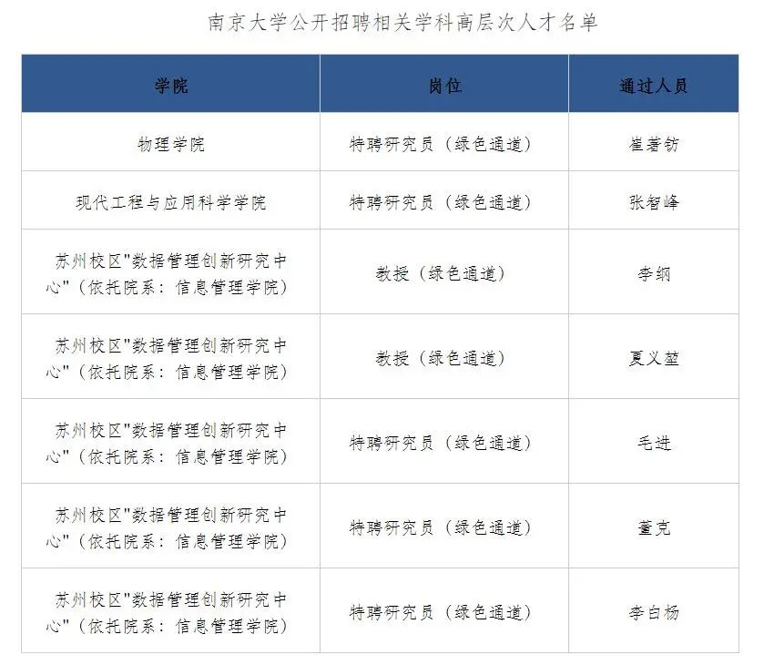 网传南京大学人力资源处发布的2021年第31批公开招聘相关学科高层次人才名单
