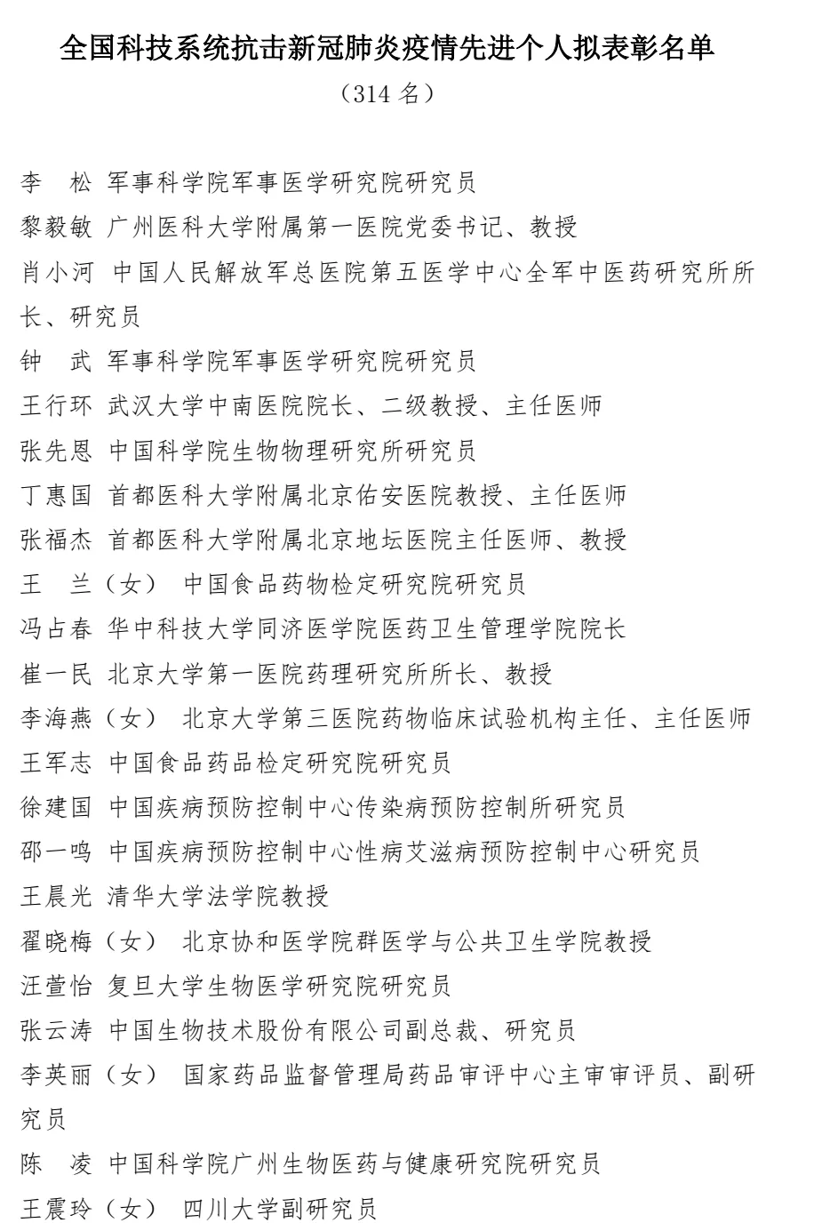 12月15日,科技部官网发布了《关于公示全国科技系统抗击新冠肺炎疫情先进集体和先进个人拟表彰对象的公告》,拟表彰全国科技系统抗击新冠肺炎疫情先进集体163个,全国科技系统抗击新冠肺炎疫情先进个人314名。全部名单如下: