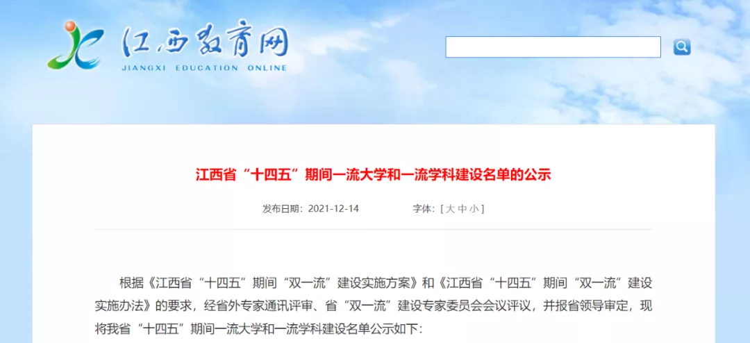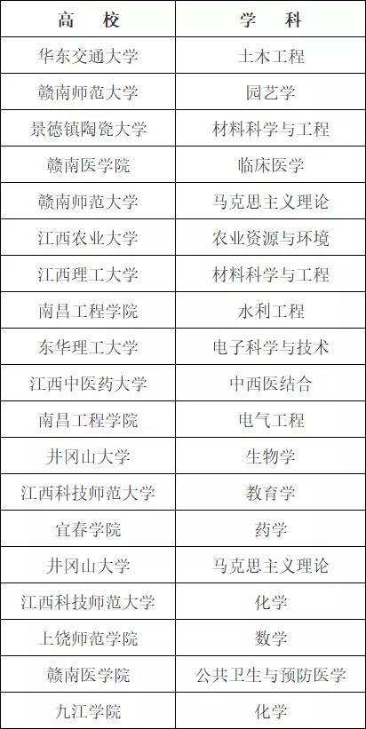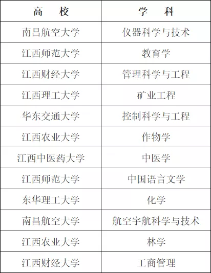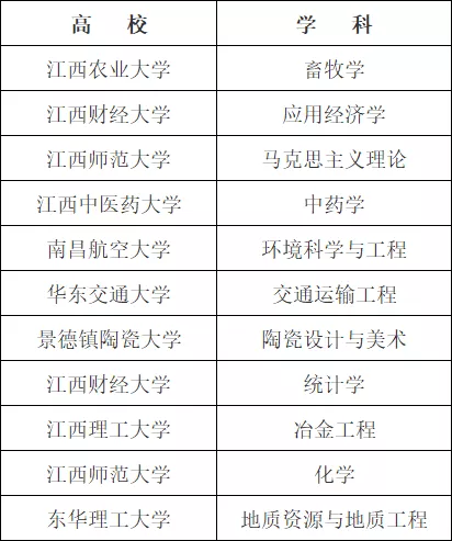 江西省“十四五”期间一流大学和一流学科建设名单的公示