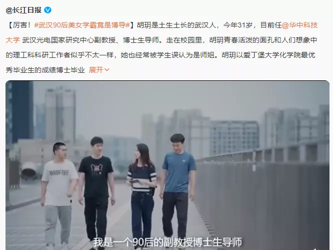 近日,“90后”博士生导师、华中科技大学副教授胡玥在网络走红。据报道,拥有高颜值的她,28岁时就成为副教授、硕士生导师,30岁成为博士生导师。近5年,合作发表SCI论文60余篇。