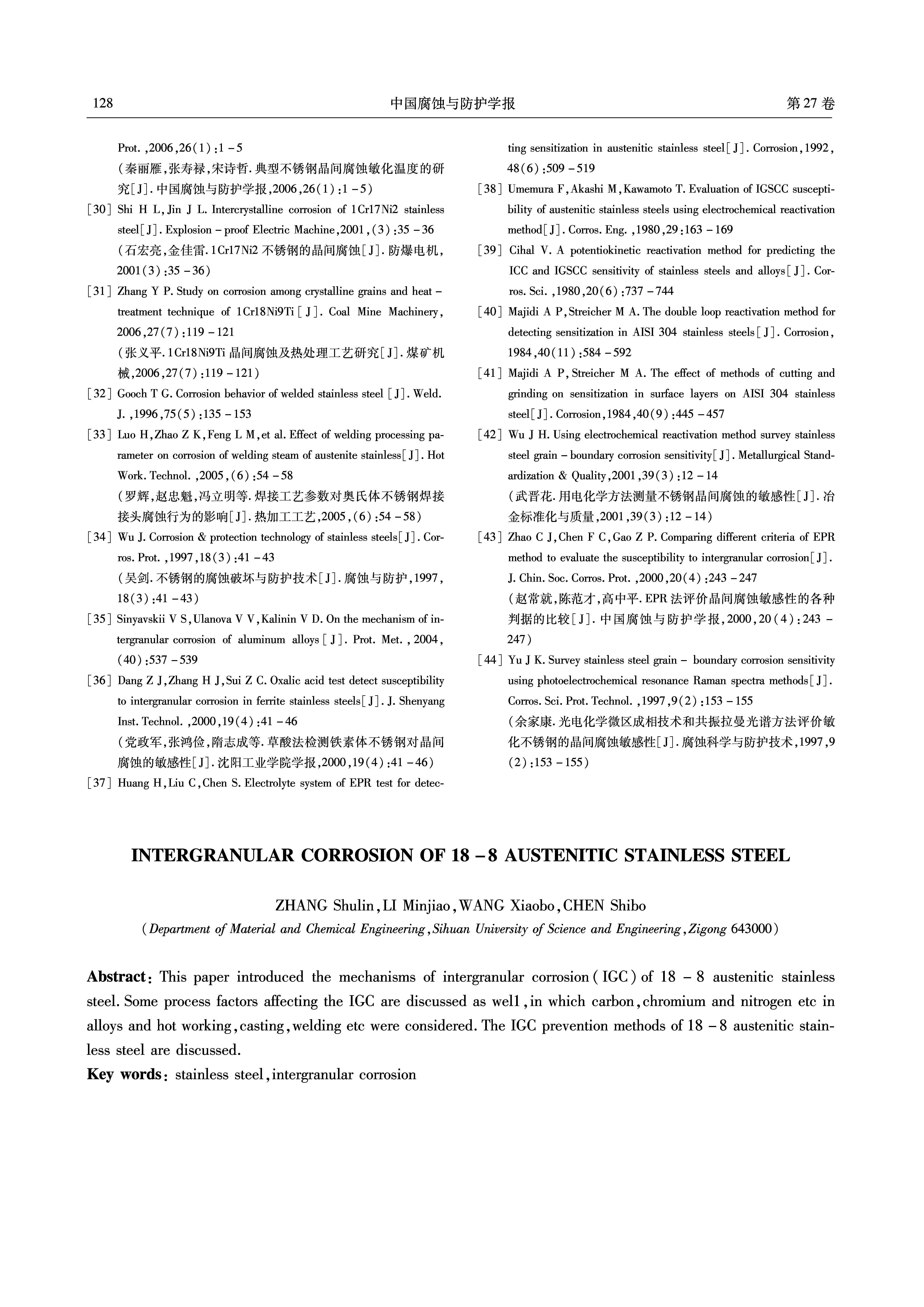 2021-12-28 16:14:59 作者:陈世波;王晓波 来源:中国腐蚀与防护学报 分享至: