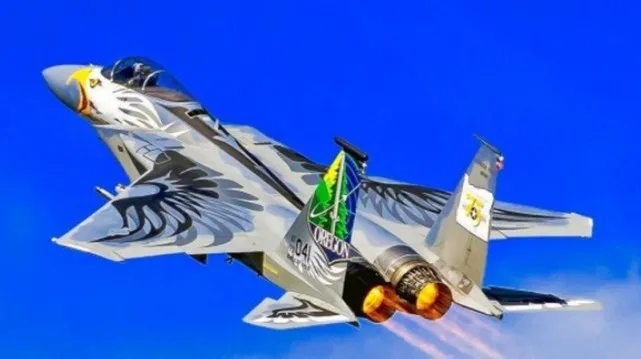 对于作战飞机而言,机身涂装的主要作用在于隐真示假,也就是伪装和隐藏。比如一般海上作战的舰载机的涂装,就多以浅灰色、浅蓝色和白色为主。图中的这架美军F-15喷气式战斗机所涂的白头海雕,就很好地契合了这一特点。