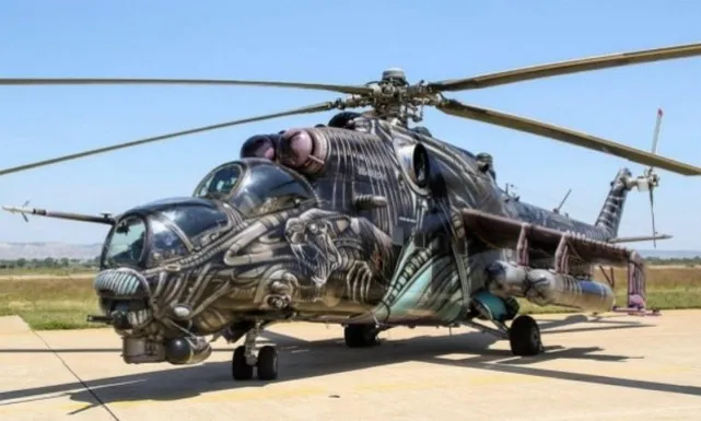 2016年,北约国家空军的年度集会活动“北约老虎会”在西班牙的萨拉戈萨市隆重举行。在此次活动上,来自捷克空军的一架米24-母鹿武装直升机,凭借其科幻色彩浓重的宇宙飞船主题涂装,一举拿下了当年的“最佳彩绘老虎飞机”涂装大奖。在它的机身上,类似电影《异形》中的外星生物正张着血盆大口蠢蠢欲动。这样的飞机要是出现在战场上,敌军会不会未战先怯?
