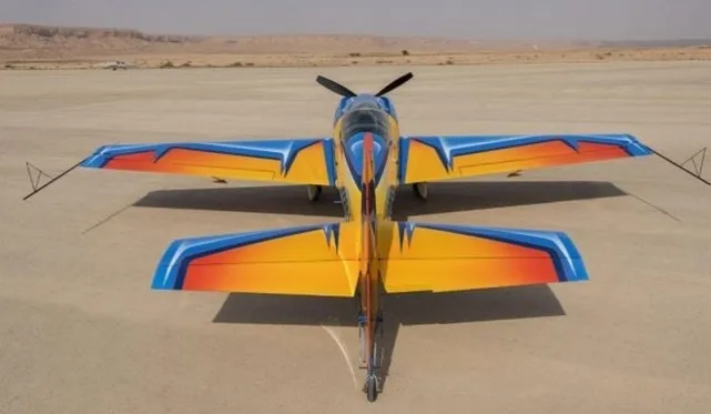 这架飞机虽然造型奇特,但是和它的这身涂装倒是相得益彰。它由意大利飞机设计师设计建造,于2011年12月26日进行了首次试飞,并参加了意大利航空展,一经亮相,就成了全场令人瞩目的焦点。它的控制系统和飞机造型一样怪异:操纵杆从驾驶舱顶部垂下来,这是反本能的——你必须把它拉回来俯冲,然后推起它爬升。图中这只惟妙惟肖的“大公鸡”正咬着牙在草地上滑行,它似乎要向世人证明,老子就是能飞!