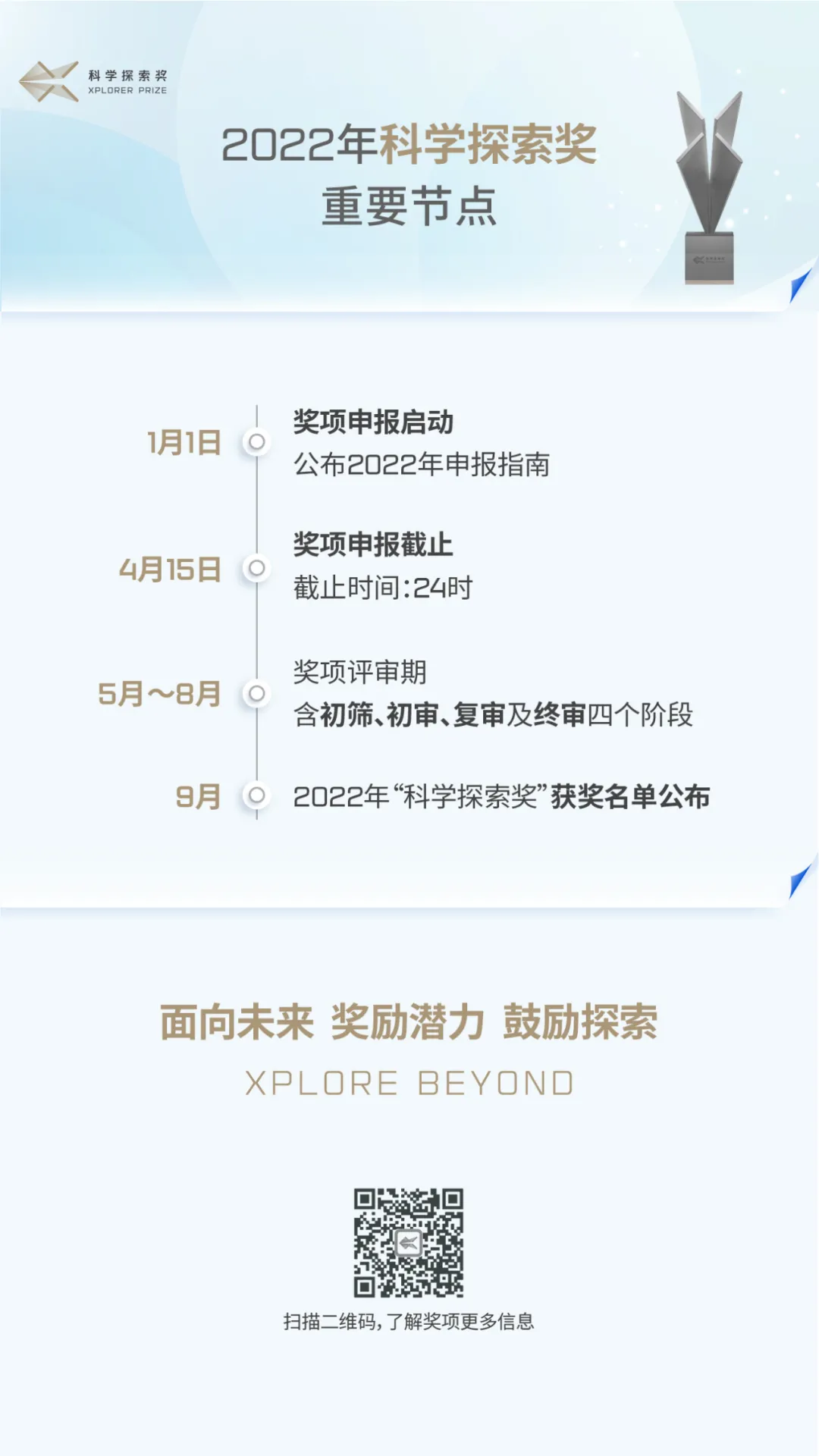 现在就可以着手准备2022年科学探索奖的申报事宜啦。