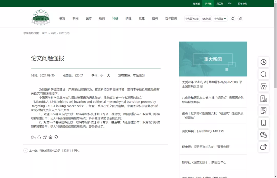 在距离现在最近的12月29日通报中,位于西安的陕西省人民医院上榜。小编大吃一惊现在这么严格了吗?这西安现在正处于抗疫的关键时期,能边抗疫边查处学术不端?小编特意点开通报原链接,原来这起案件是2021年7月医院就已经通报了。直到12月才正式经由国家卫健委发布。