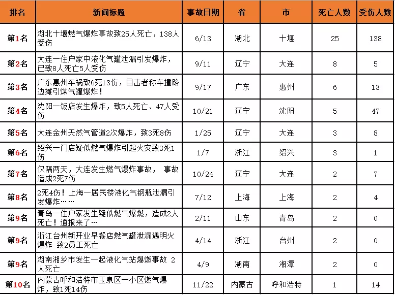 【爆炸数据】2021年度全国十大燃气爆炸新闻