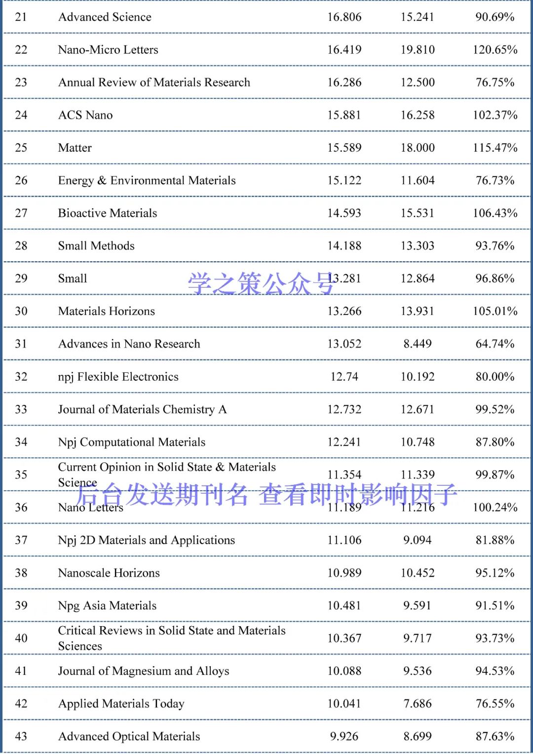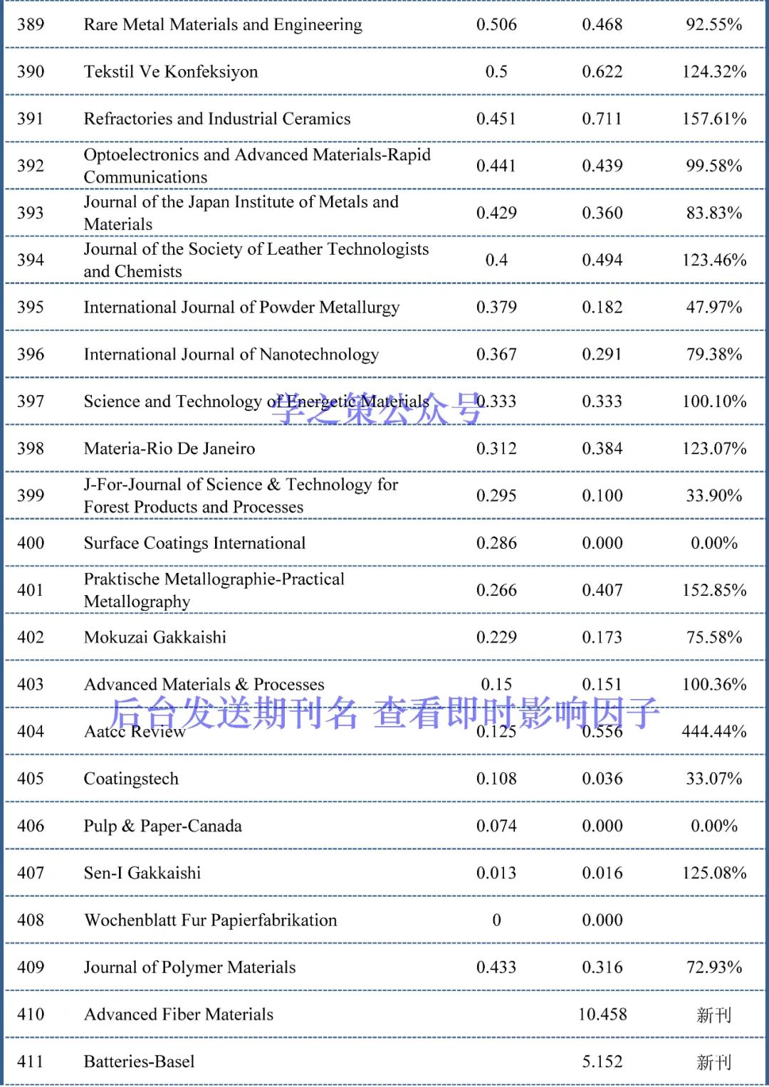 公众号后台对话框回复期刊名称,即可查看即时影响因子