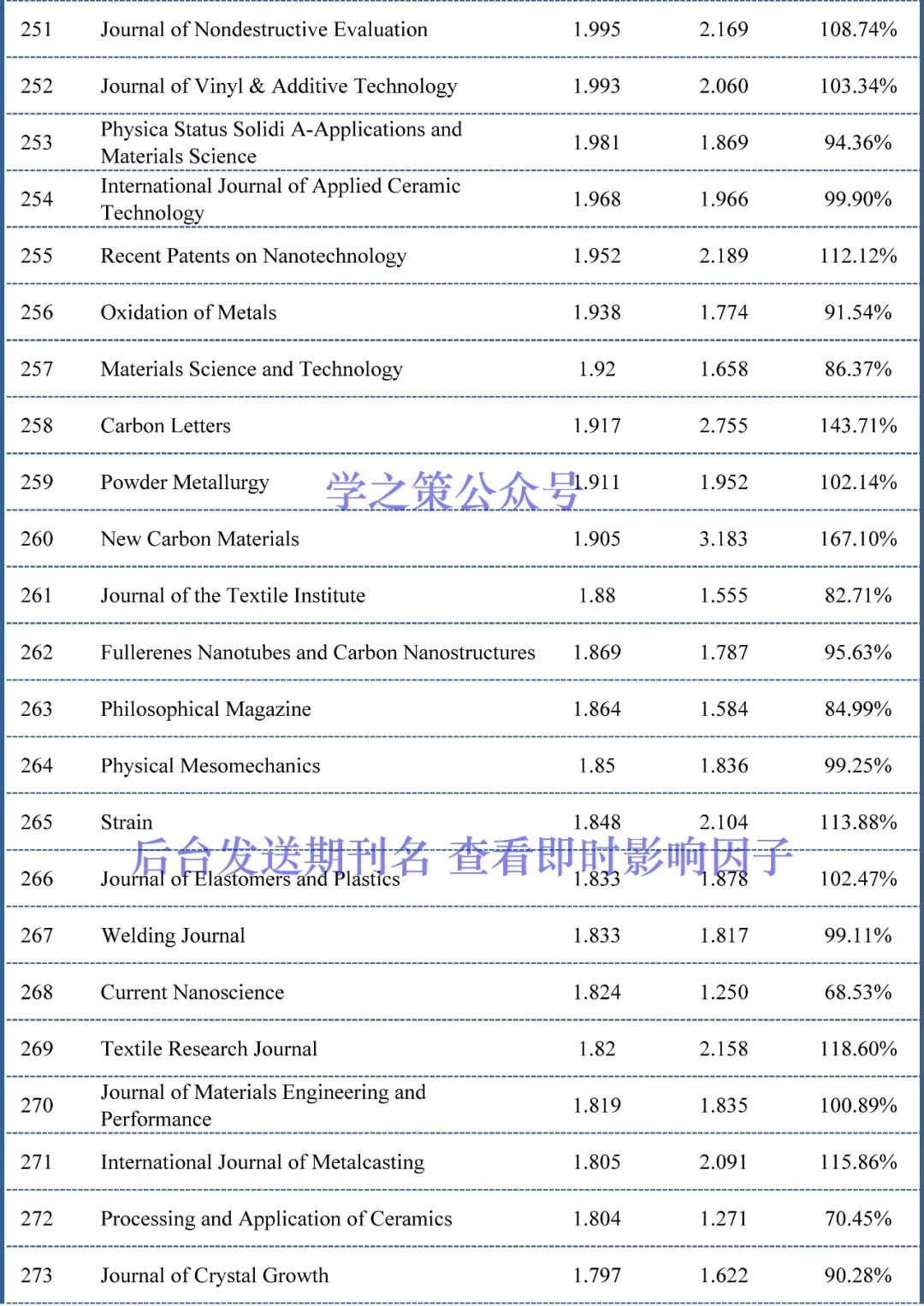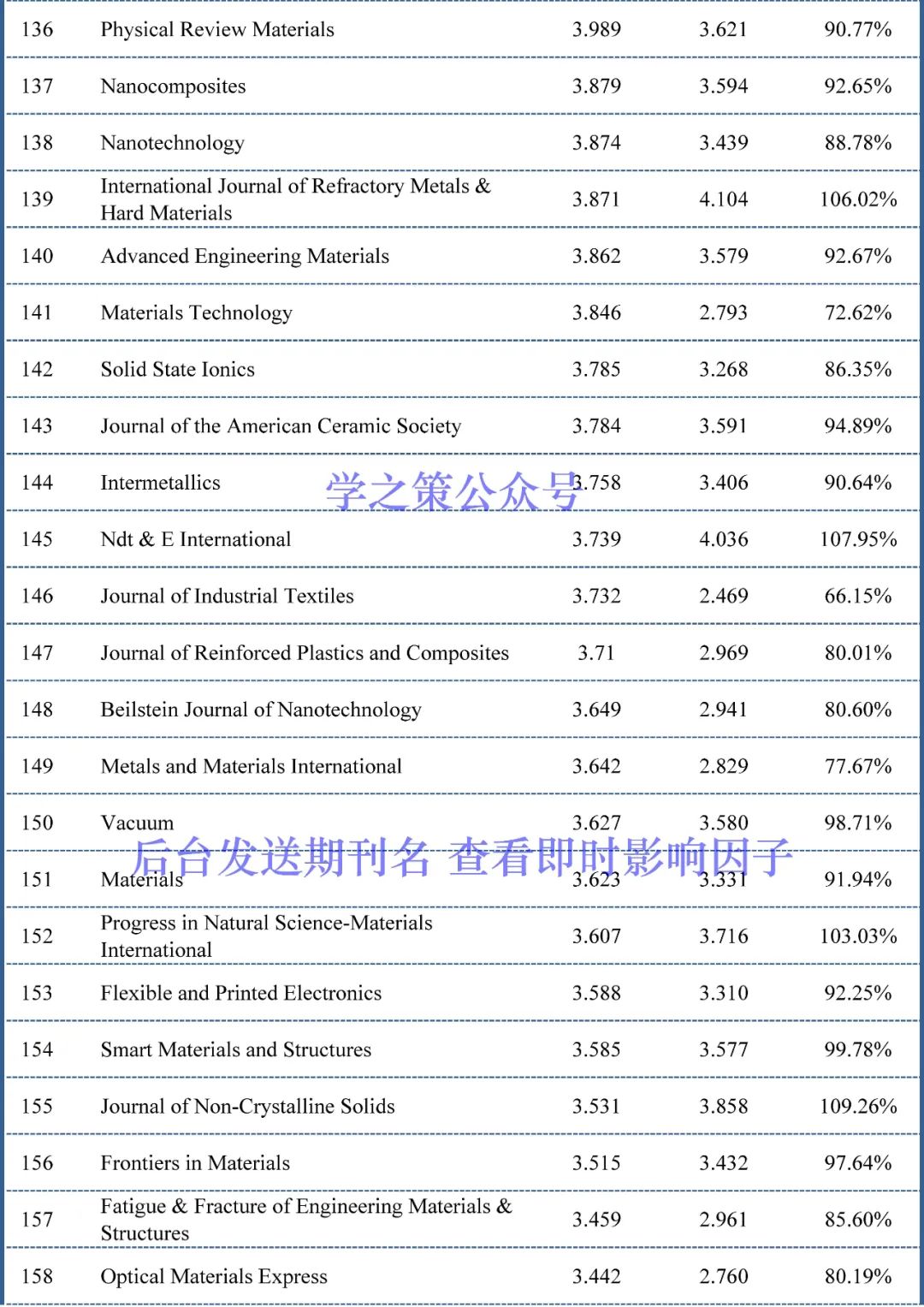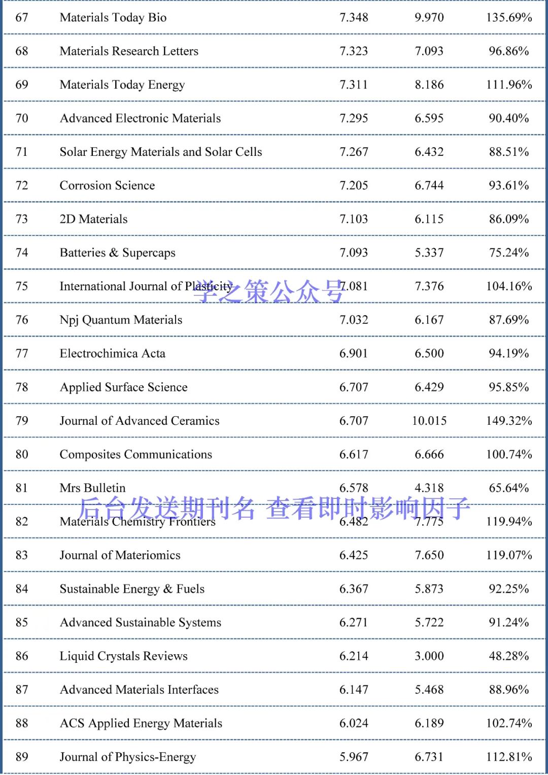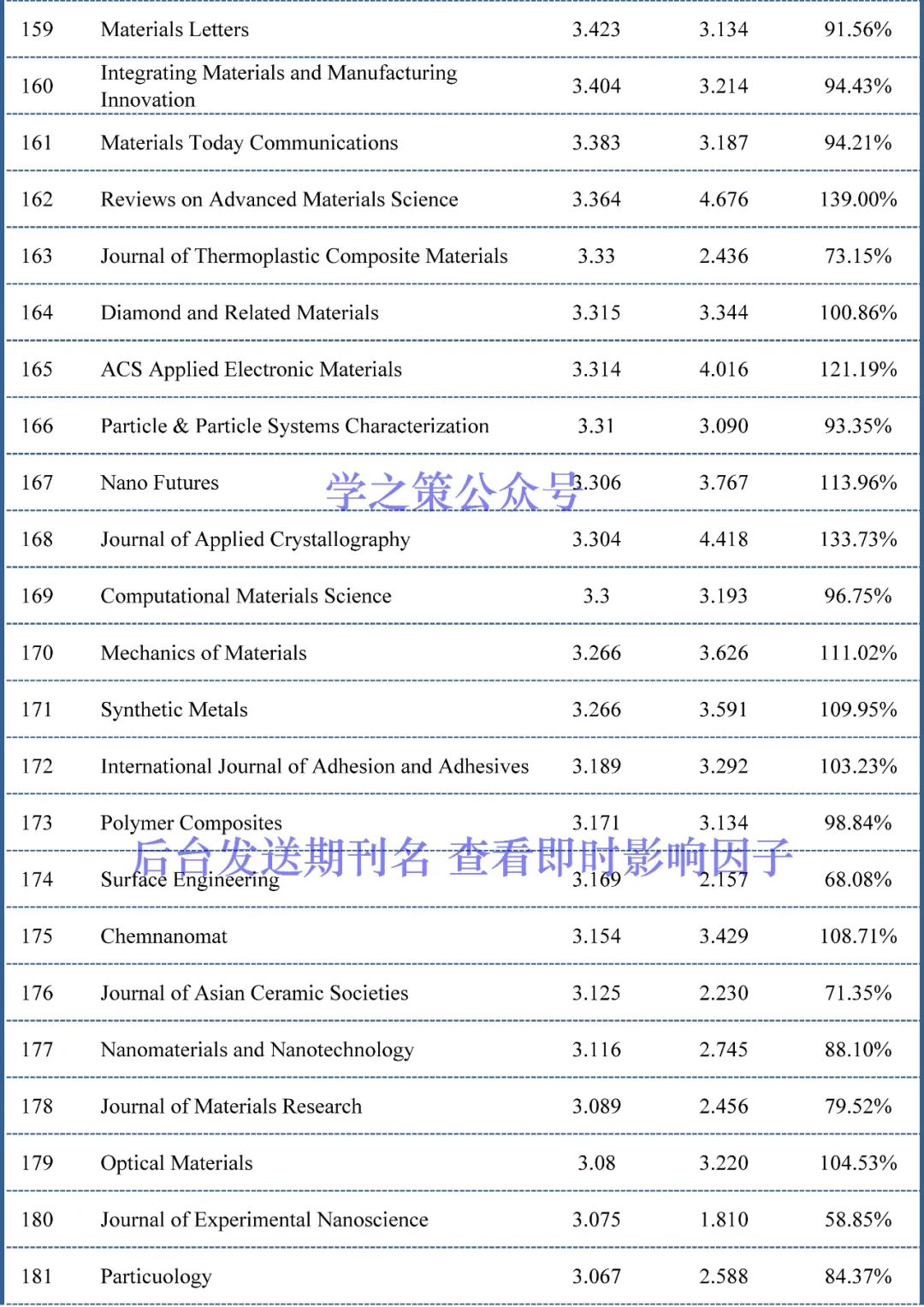 截至目前,材料科学期刊已经有153本期刊(上个月为111本)的完成度超过了100%,也就是说这153本期刊明年的影响因子上升已无悬念。
