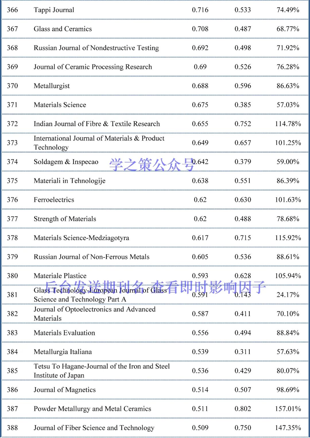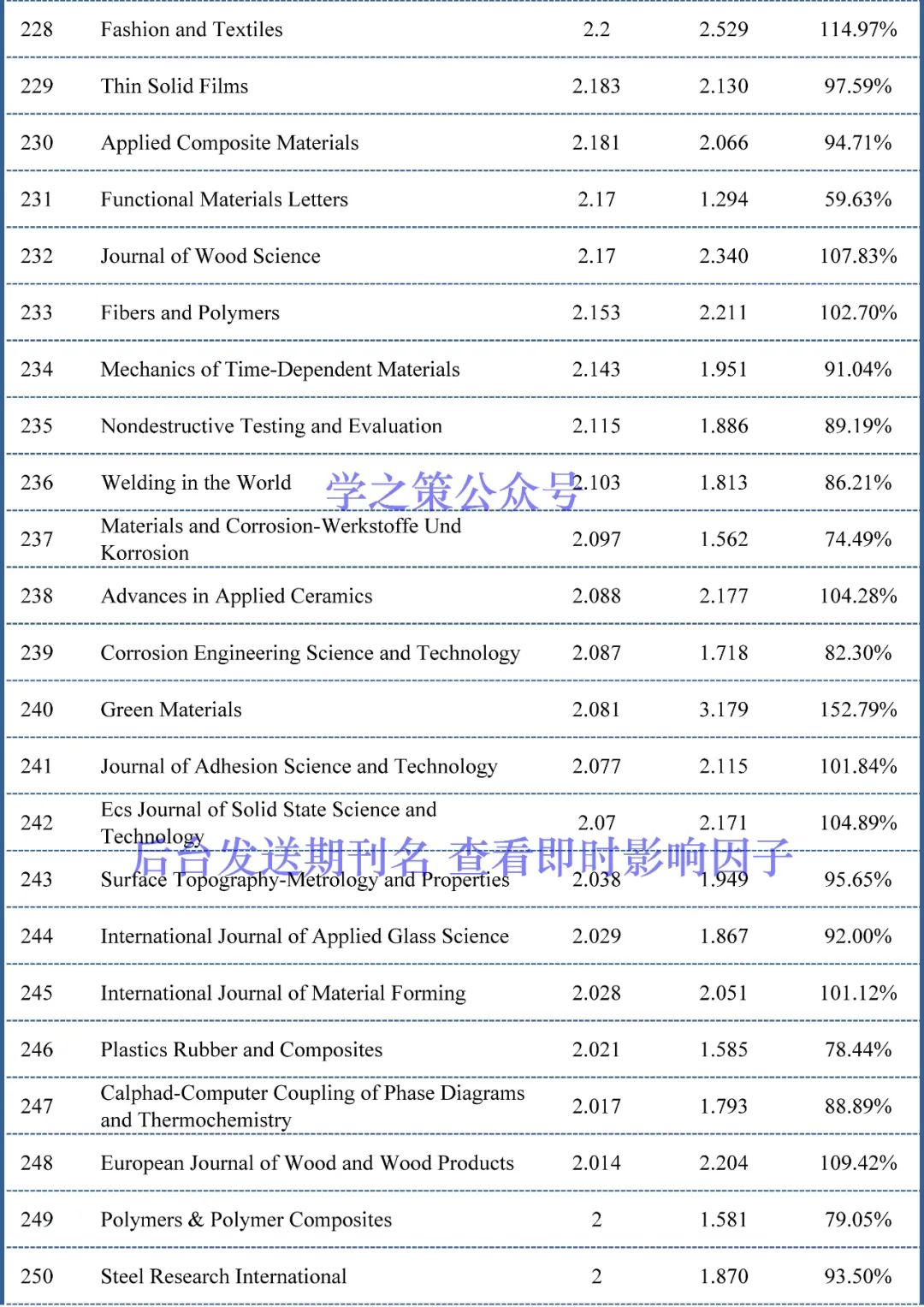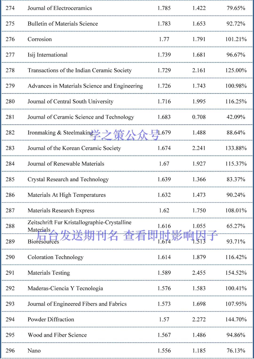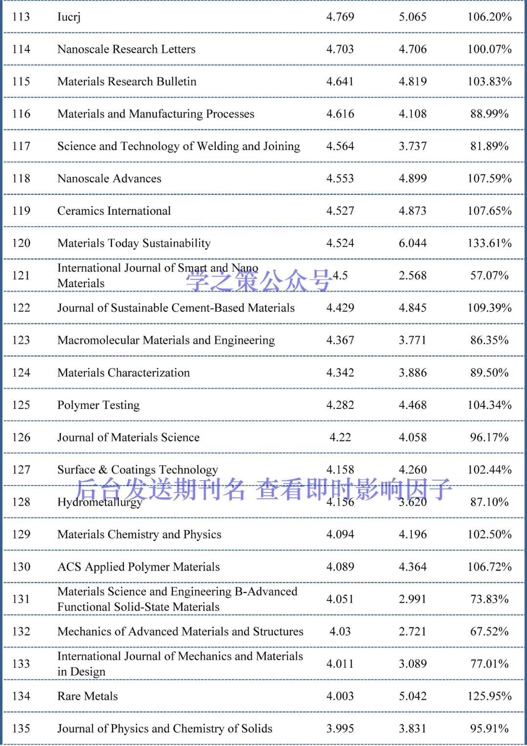 截至目前,材料科学期刊已经有153本期刊(上个月为111本)的完成度超过了100%,也就是说这153本期刊明年的影响因子上升已无悬念。