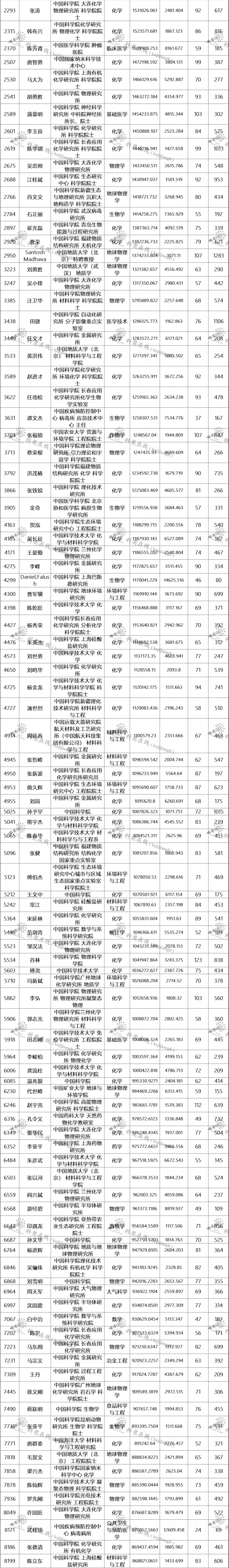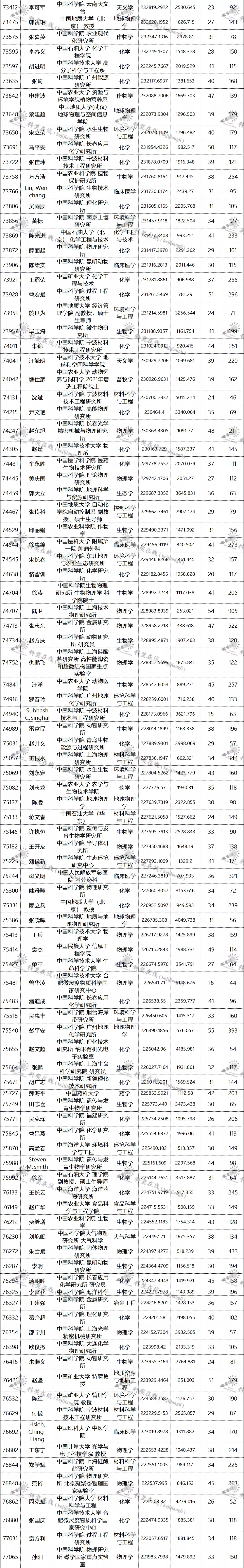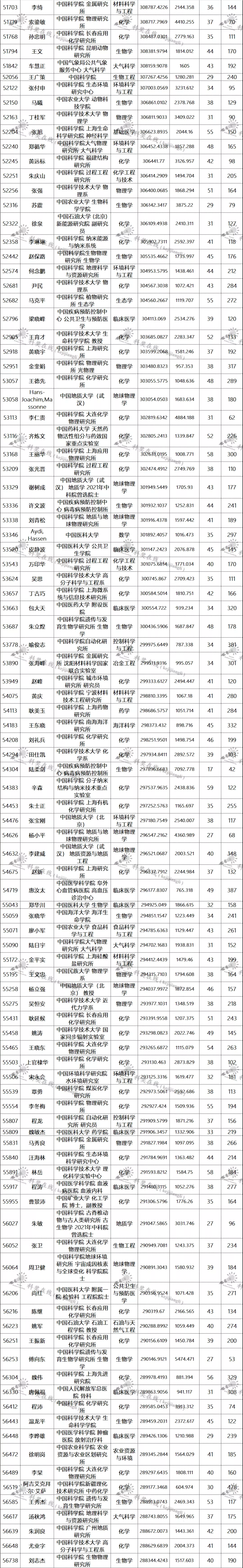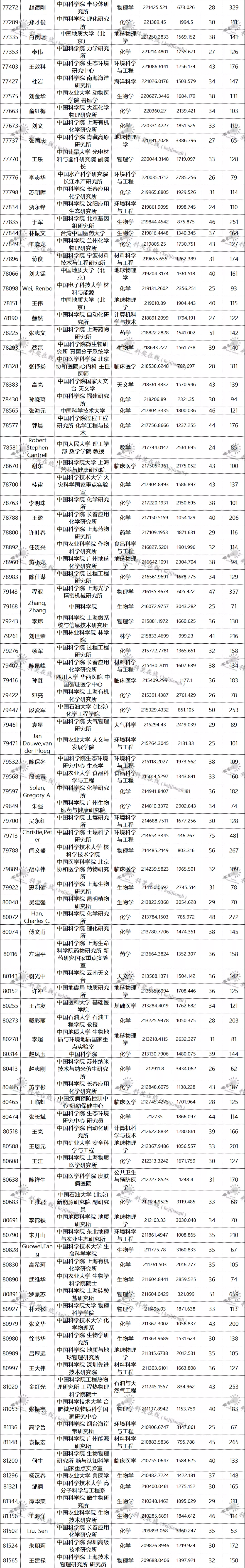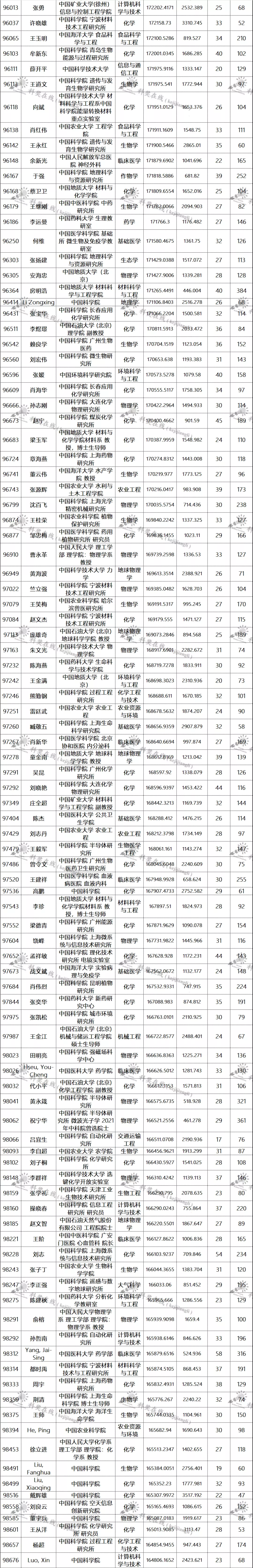 三、全球排名前100000以内的中国学者名单