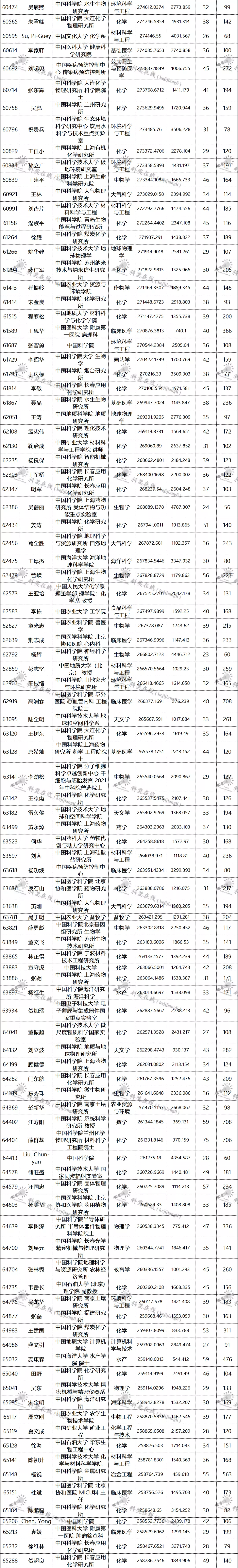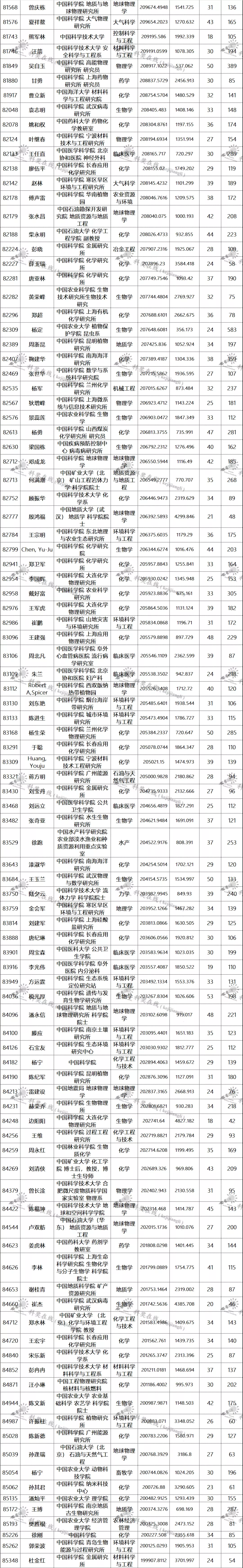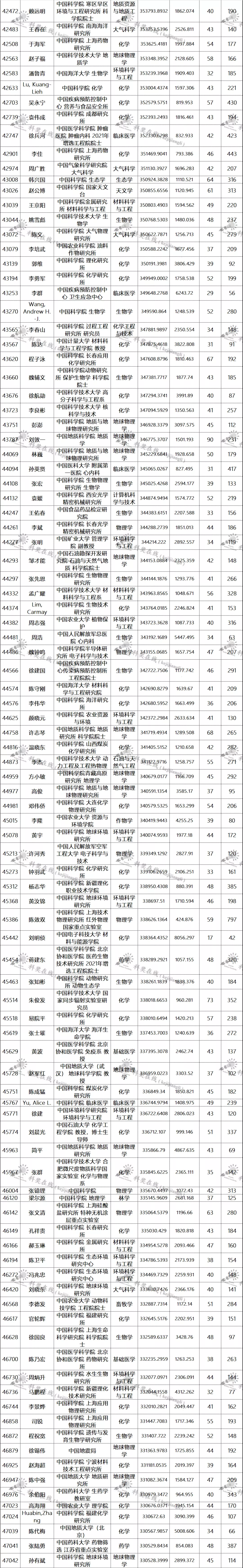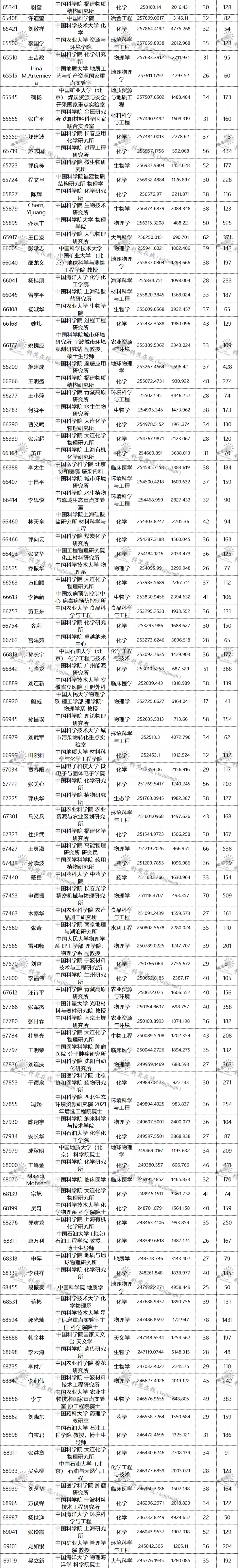 三、全球排名前100000以内的中国学者名单
