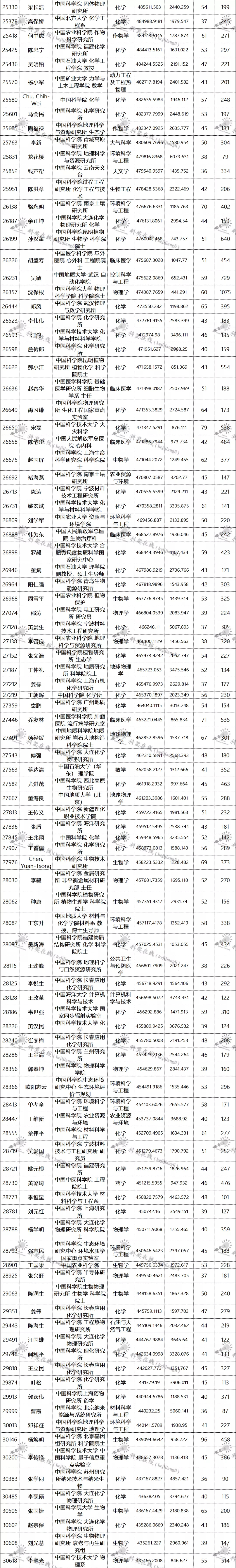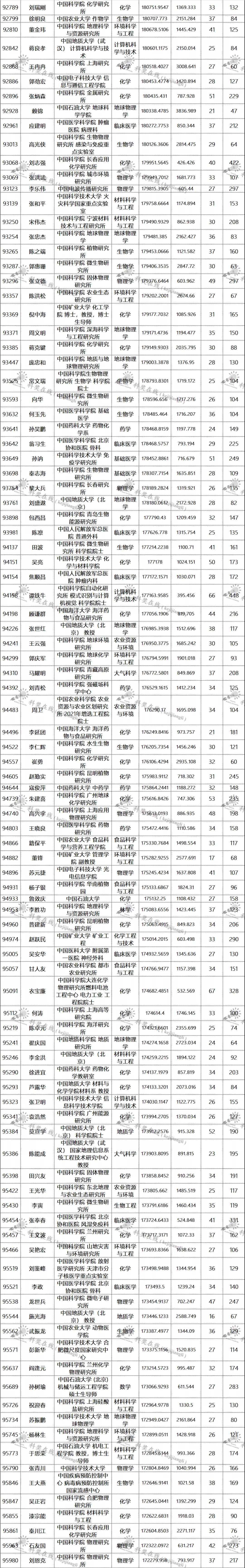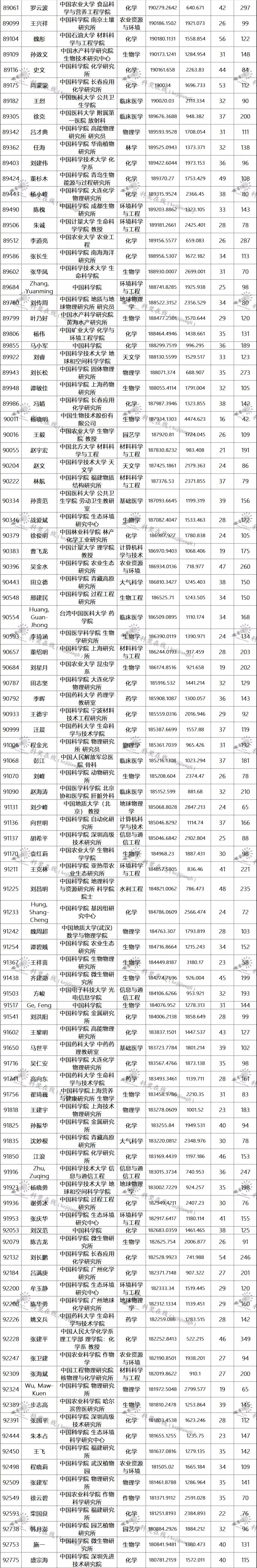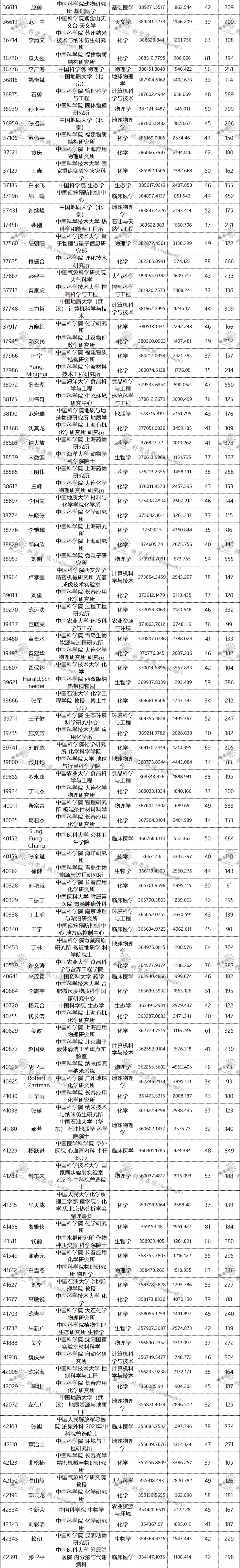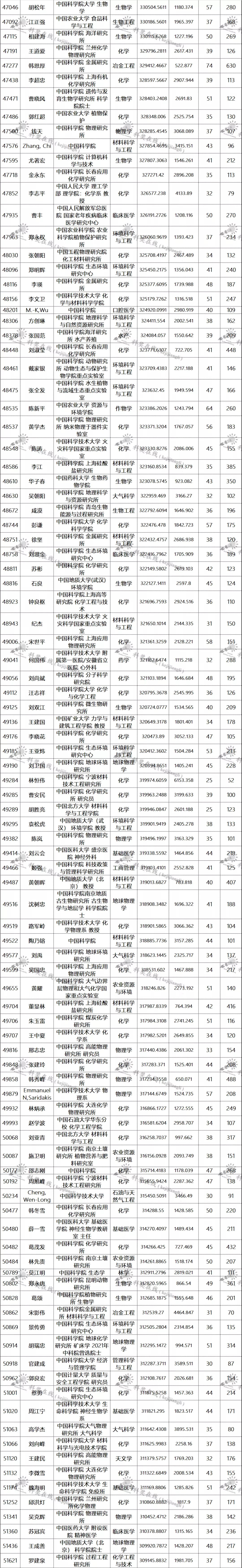 三、全球排名前100000以内的中国学者名单